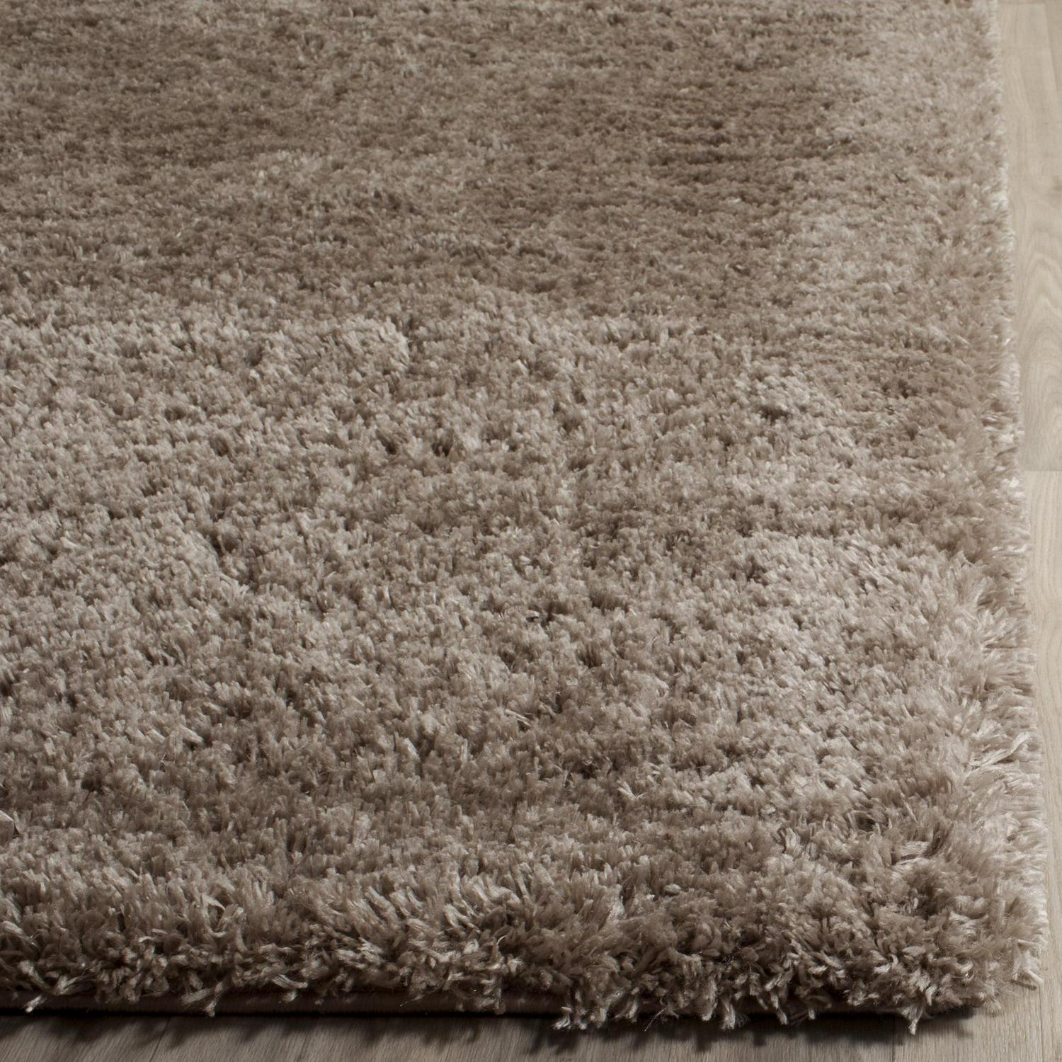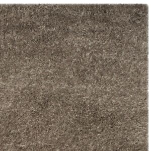 SAFAVIEH Indie Balfour Solid Polyester Shag Area Rug, Mushroom, 4′ x 6′