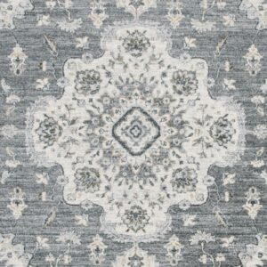 Isabella Rug Collection. Floral Medallion Area Rugs. The Isabella Rug Collection by Safavieh displays timeless floral medallions framed in classic ornate borders. Colored in in soft hues of grey and blue, Isabella area rugs are an ideal choice for brining subtle elegance to any traditional or classy-casual room decor. Power-loomed using soft synthetic yarns in a smooth, medium cut pile to look and feel beautiful year after year.