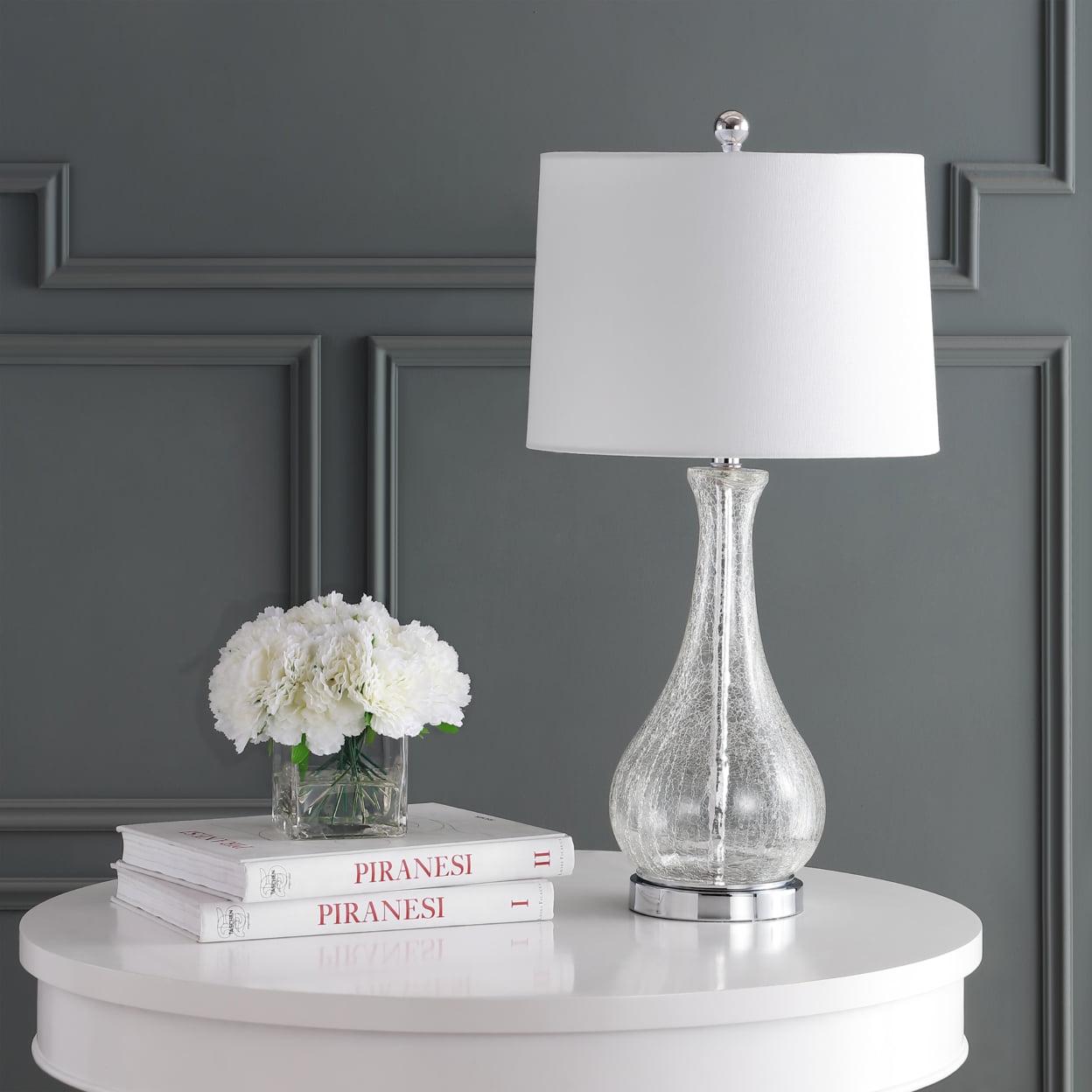SAFAVIEH Jareth Table Lamp (Set of 2) | White | A rich blend of style and substance, this monumental table lamp makes a grand statement in any living room. A white wash finish showcases its assertive curves and bold stature, perfectly paired with an off white cotton shade. Sold in sets of two. Begin your rug, furniture, lighting, outdoor, and home decor search and discover over 100,000 SAFAVIEH products today.