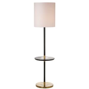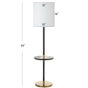 SAFAVIEH Janell Floor Lamp | Black / Gold | A chic iteration of form and function, this black floor lamp with table elevates any space. Use as an accent table and floor lamp in the living room or as a nightstand and bedside light source. Its multitasking makes it perfect for a small foyer. Begin your rug, furniture, lighting, outdoor, and home decor search and discover over 100,000 SAFAVIEH products today.