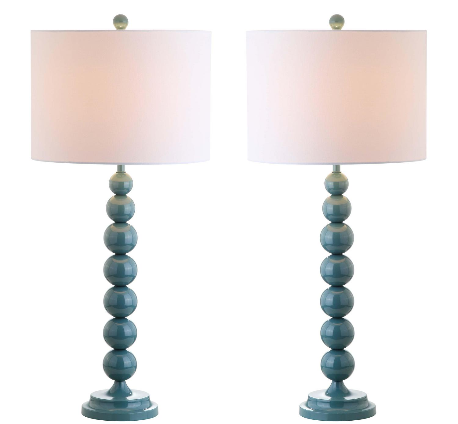 SAFAVIEH Jenna 32 in. Blue Iron Table Lamp with Off-White Cotton Shade, Set of 2