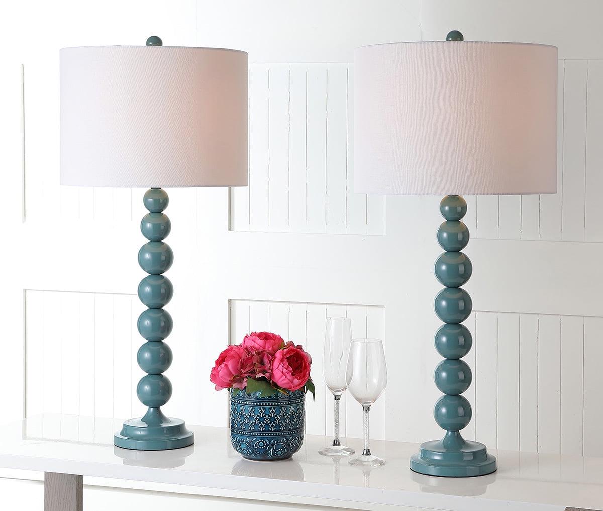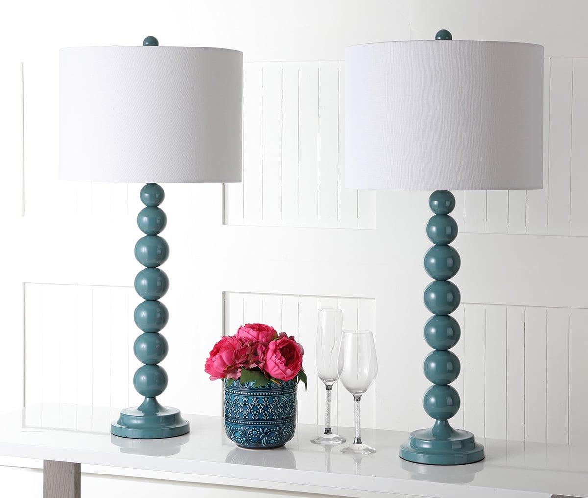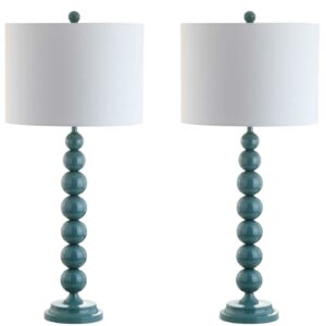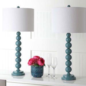 SAFAVIEH Jenna 32 in. 2-Lt. Blue Iron Table Lamp with Off-white Cotton Shade, Set of 2