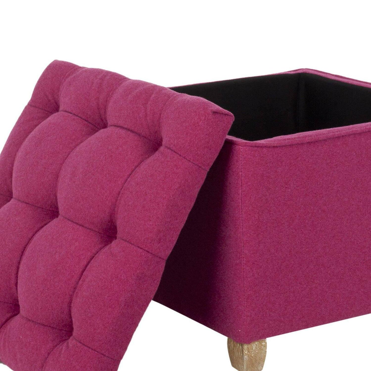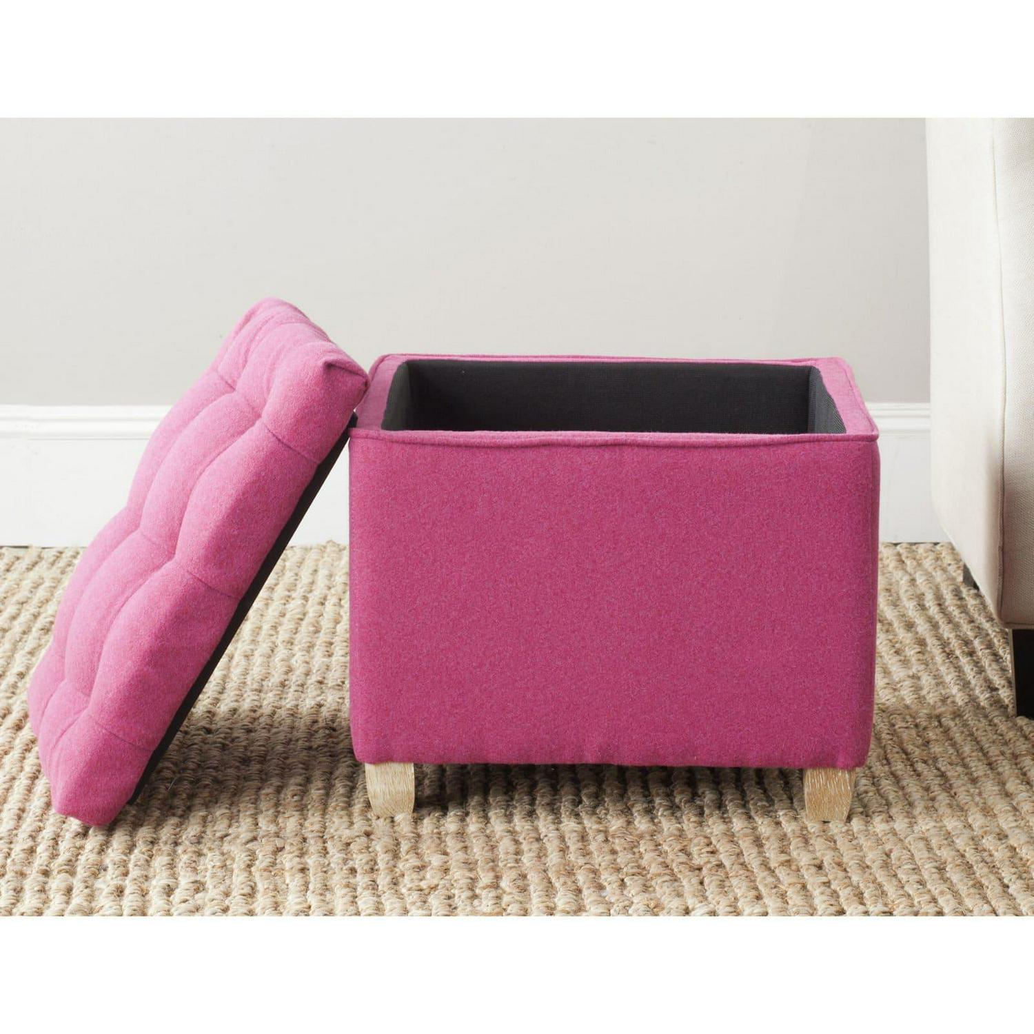 The Safavieh Joanie Ottoman is perfect for active family. This ottoman comes with generous storage space, ideal for books, blankets, knitting, or remotes. The traditional button tufting is expertly completed with silver nailhead trim. Its four oak legs are finished in pickled oak. This ottoman comes in your choice of sophisticated colors.