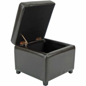 You ll flip. The soft modern style of the Jonathan Flip Top ottoman brings form and function to any room with its hinged top for handy access to items you ve stowed inside. Crafted with sumptuous brown bicast leather and black beech wood legs, it s a study in handsome contemporary design.