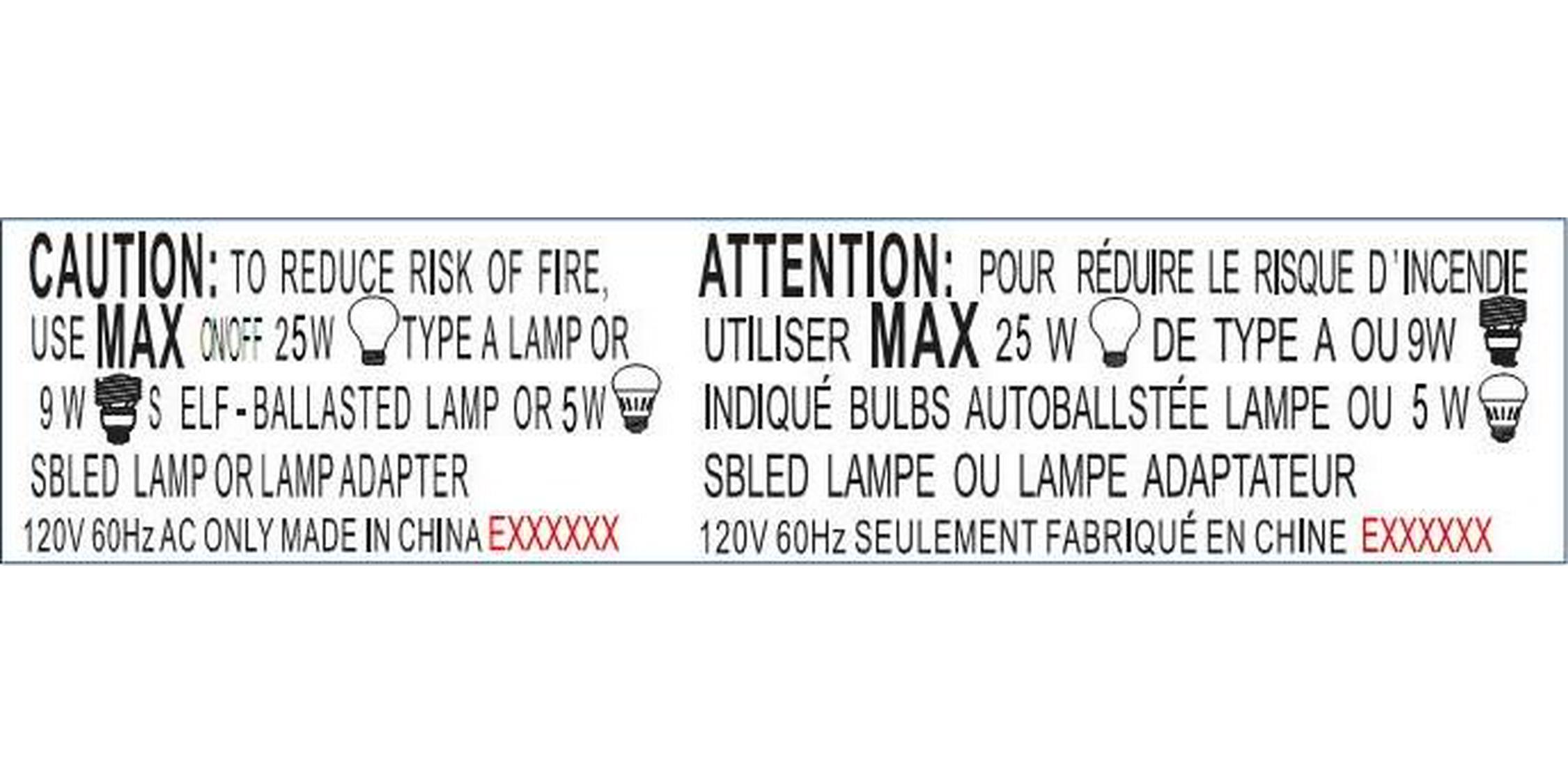 – Lamp Certification: UL