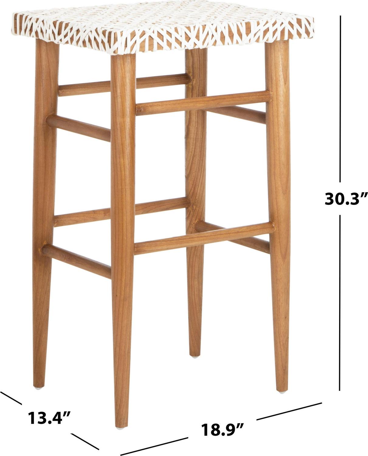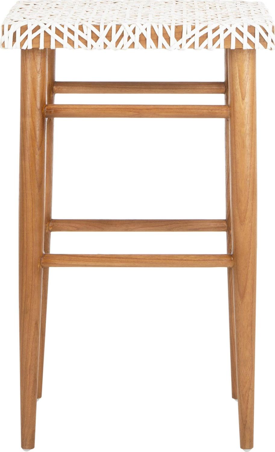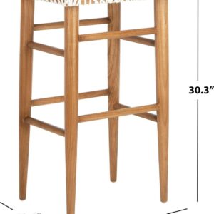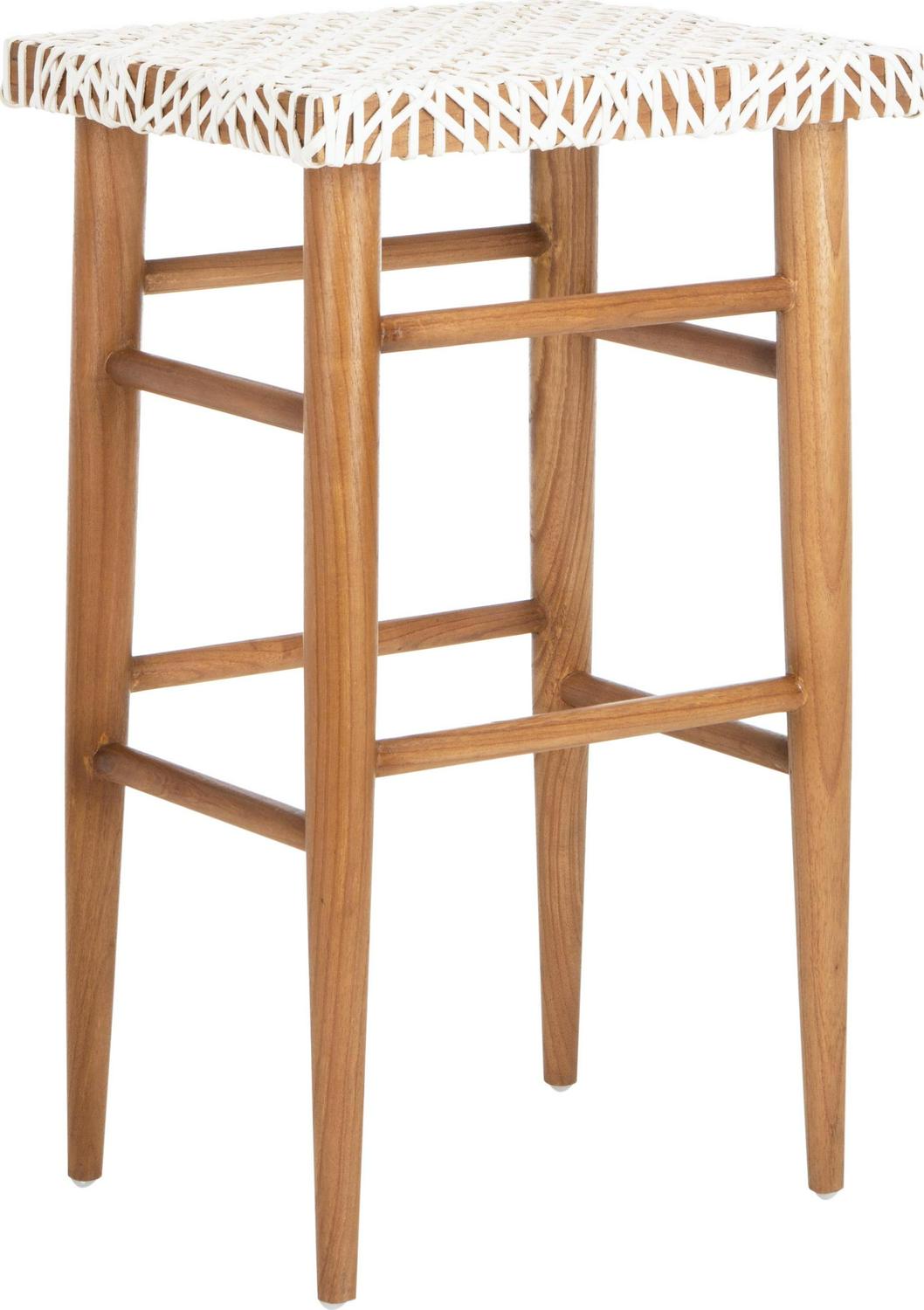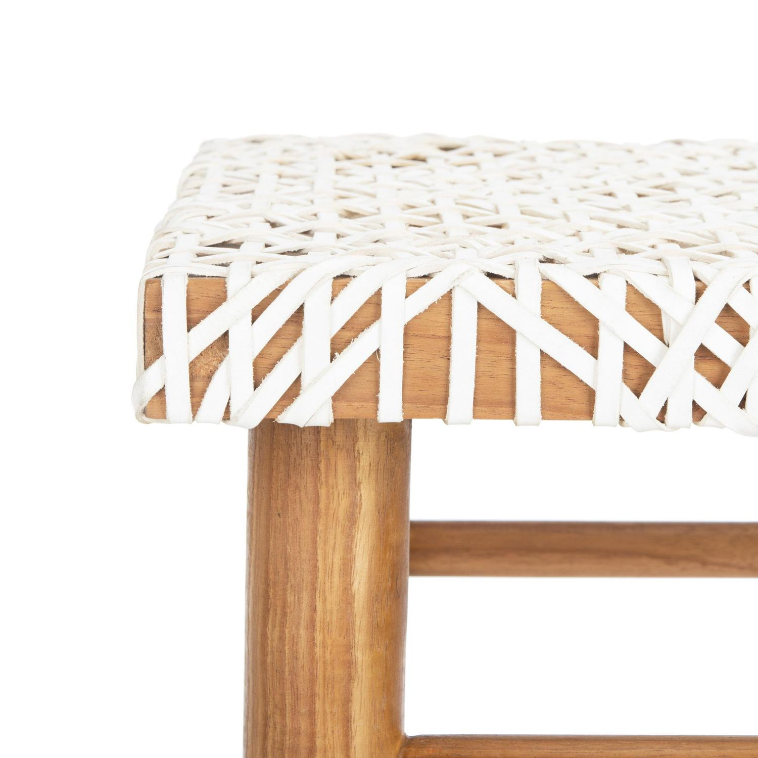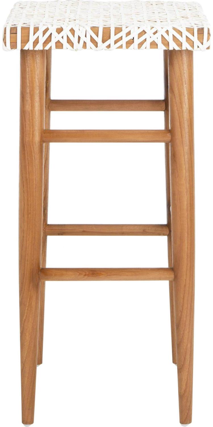 SAFAVIEH Kaleo Woven Leather Barstool with Footrest, White/Honey