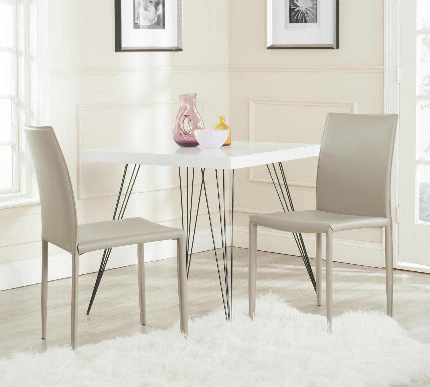 The minimalist aesthetic of the Karna dining chair (sold in a set of two) suits decorating tastes both transitional and contemporary. Upholstered with easy-care black bonded leather, these sturdy chairs exude Euro-chic style.