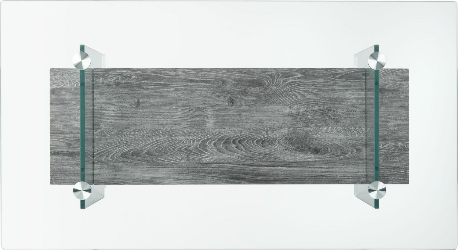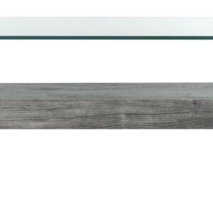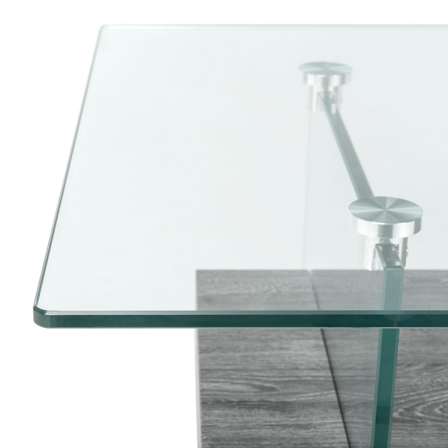 Inspired by the design of Paris top art foundation, this modern glass coffee table makes a grand statement in any living room. Crafted almost entirely of transparent glass, a black oak finish on its single shelf lends warmth and character.- Contemporary design adds a chic look to your home