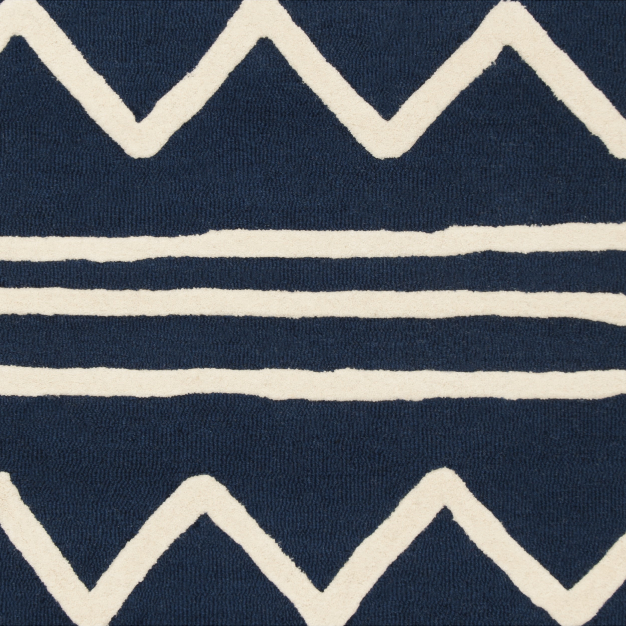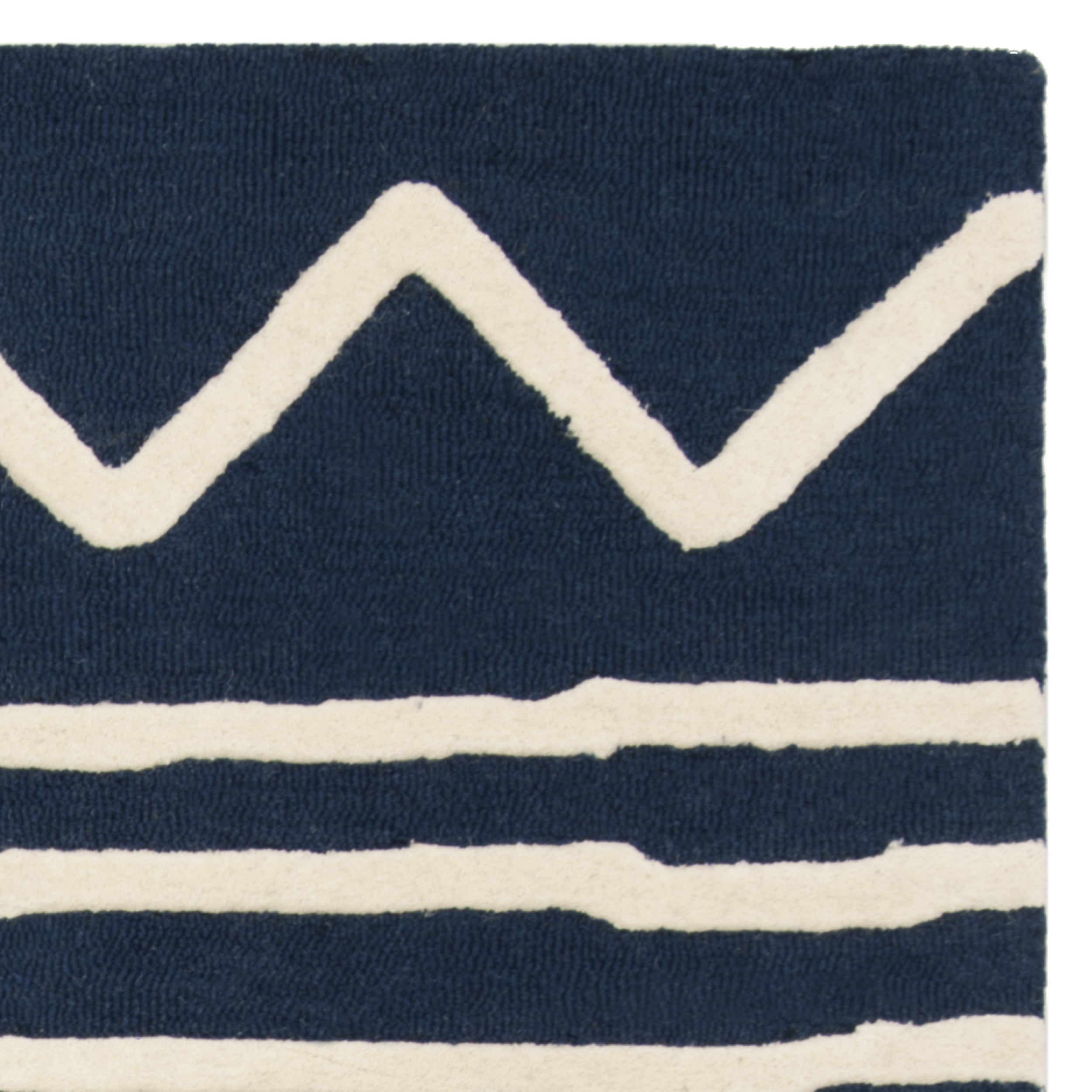 Color: Navy/Ivory Size: 4′ x 6′ Hand Tufted in India Pile Height: 0.5 in. Cotton backing, rug pad (sold separately) recommended to help prevent shifting and sliding 100% Wool Pile Stylish addition for any room Accessories in lifestyle photos not included New wool rugs shed as a natural consequence of how they are made; vacuum a new wool rug 1-2 times a week for the first few weeks using a low pressure vacuum cleaner without beater bars; vacuum in the direction of the pile, not against it; do not pull loose ends or stray loops, clip them with scissors to remove Vacuum (preferably one without beater bars) regularly and spot clean; for hard-to-remove stains, professional rug cleaning is recommended; rotating your rugs every 3-6 months will protect against uneven wear from foot traffic and furniture weight Use rug protectors under the legs of heavy furniture to avoid flattening piles Avoid direct sunlight as it will cause the colors in your area rug to fade over time; place your area rug away from direct sunlight whenever possible For an instant decorating makeover, this area rug is one of the easiest and most fashionable ways to refresh a room with character and style. Please note: The images and product dimensions on our website are as accurate as possible. Due to differences in computer monitors, some rug colors may vary slightly. Lengths and widths may vary from the published dimensions. We do our best to provide you with an exact measurement, but please be advised that some variation exists. Patterns may vary slightly according to shape and size selected. Packing and shipping of your rug may cause temporary creases; these surface waves are not imperfections or damages and will gradually recede; back-rolling or reverse rolling is the fastest and easiest way to remove creases in your area rug; allow ample time for your rug to settle, these creases and waves will normally flatten out Available in multiple color and sizes For carpet-to-carpet use, we recommend placing a hold pad in-between for protection