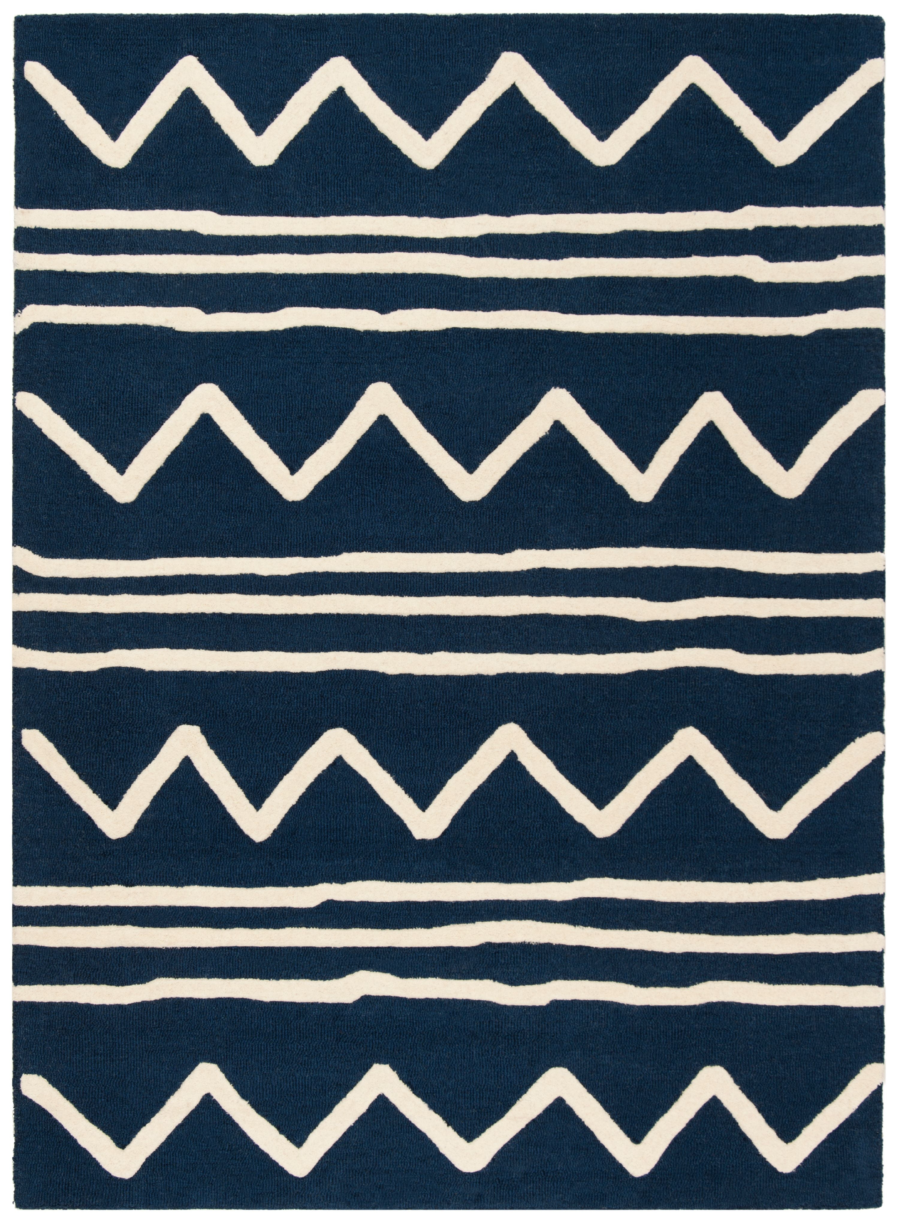 SAFAVIEH Kids Zigzag Striped Wool Area Rug, Navy/Ivory, 4′ x 6′
