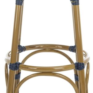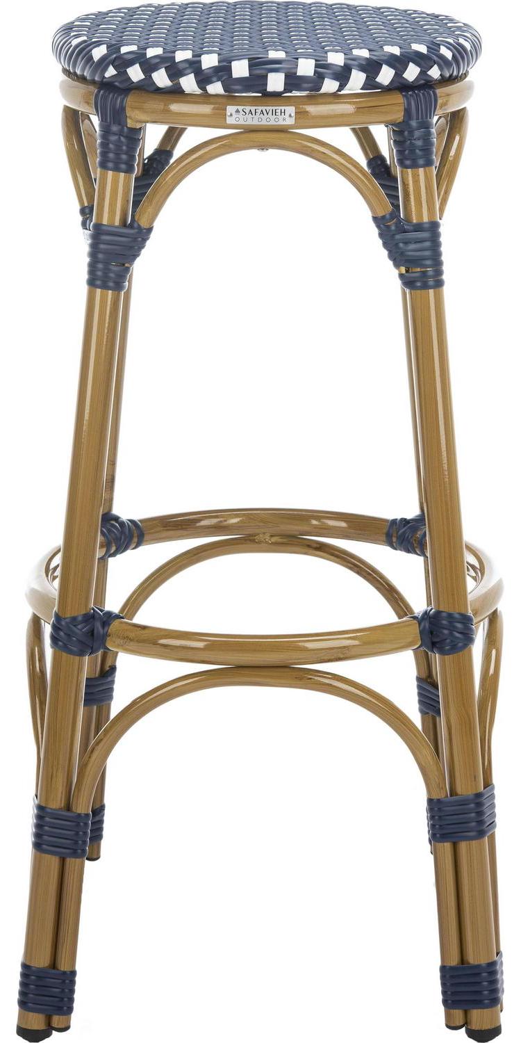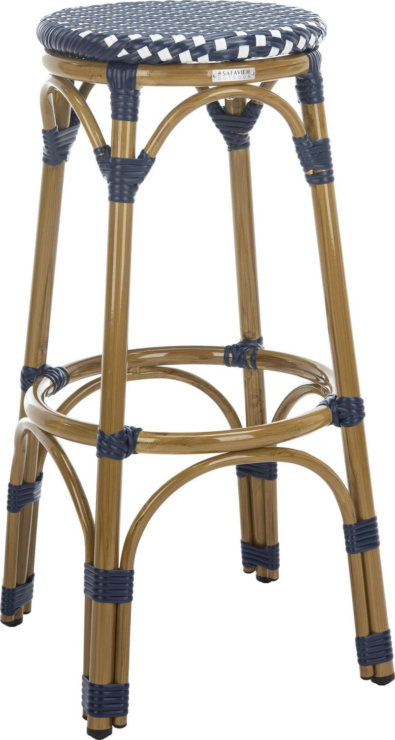 SAFAVIEH Kipnuk Outdoor Patio Rattan Bar Stool, Navy/White