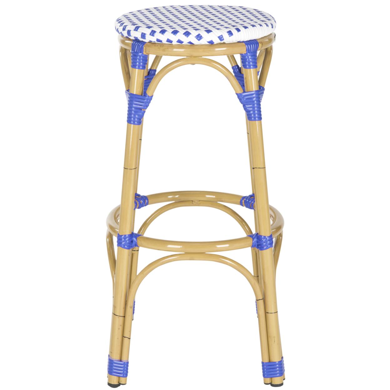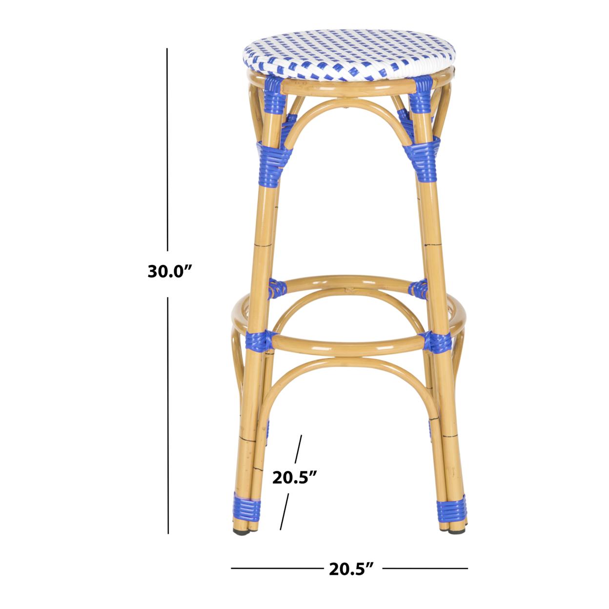 SAFAVIEH Kipnuk Stool Blue/White (Indoor/Outdoor) Blue / White Raise a glass to coastal farmhouse decor with the Kipnuk Indoor Outdoor Bar Stool. A colorful addition to the kitchen or patio bar, Kipnuk takes its cues from classic European bistro stools for effortless style, crafted of white and blue rattan and faux bamboo for a relaxing, easy going ambiance.