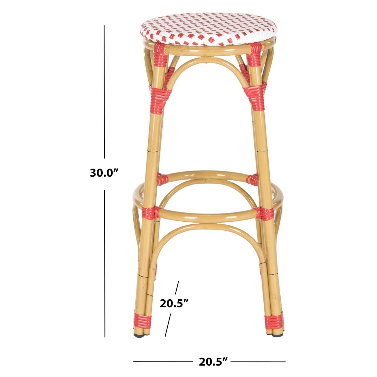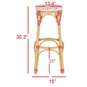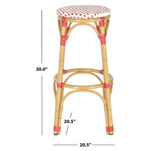 SAFAVIEH Kipnuk Stool Red/White (Indoor/Outdoor) Red / White Raise a glass to coastal farmhouse decor with the Kipnuk Indoor Outdoor Bar Stool. A colorful addition to the kitchen or patio bar, Kipnuk takes its cues from classic European bistro stools for effortless style, crafted of white and red rattan and faux bamboo for a relaxing, easy going ambiance.