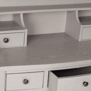 SAFAVIEH Landon 5-Drawer Writing Desk Quartz Grey Fast forward the old fashioned roll top desk into the 21st century with this Landon Writing Desk. At home in any decor with its quartz grey finish, Landon’s drawers and storage cubbies help organize your all your essentials. Perfect in the kitchen for kids home workstations.