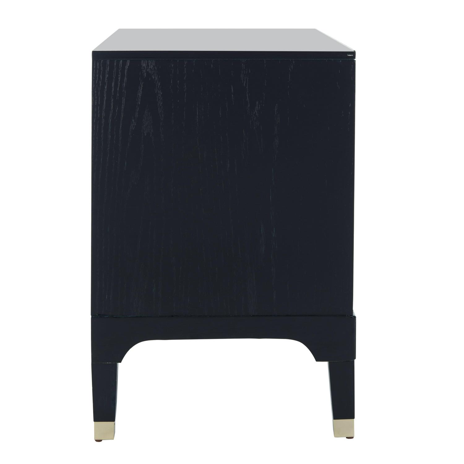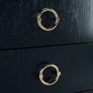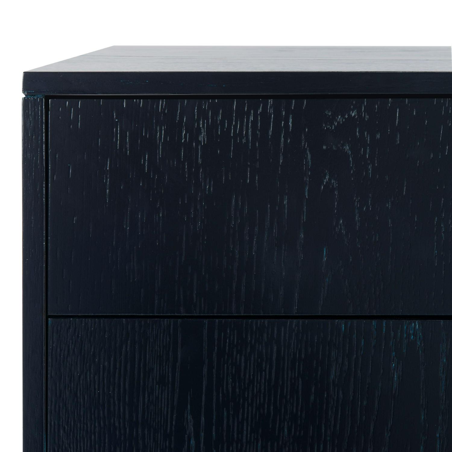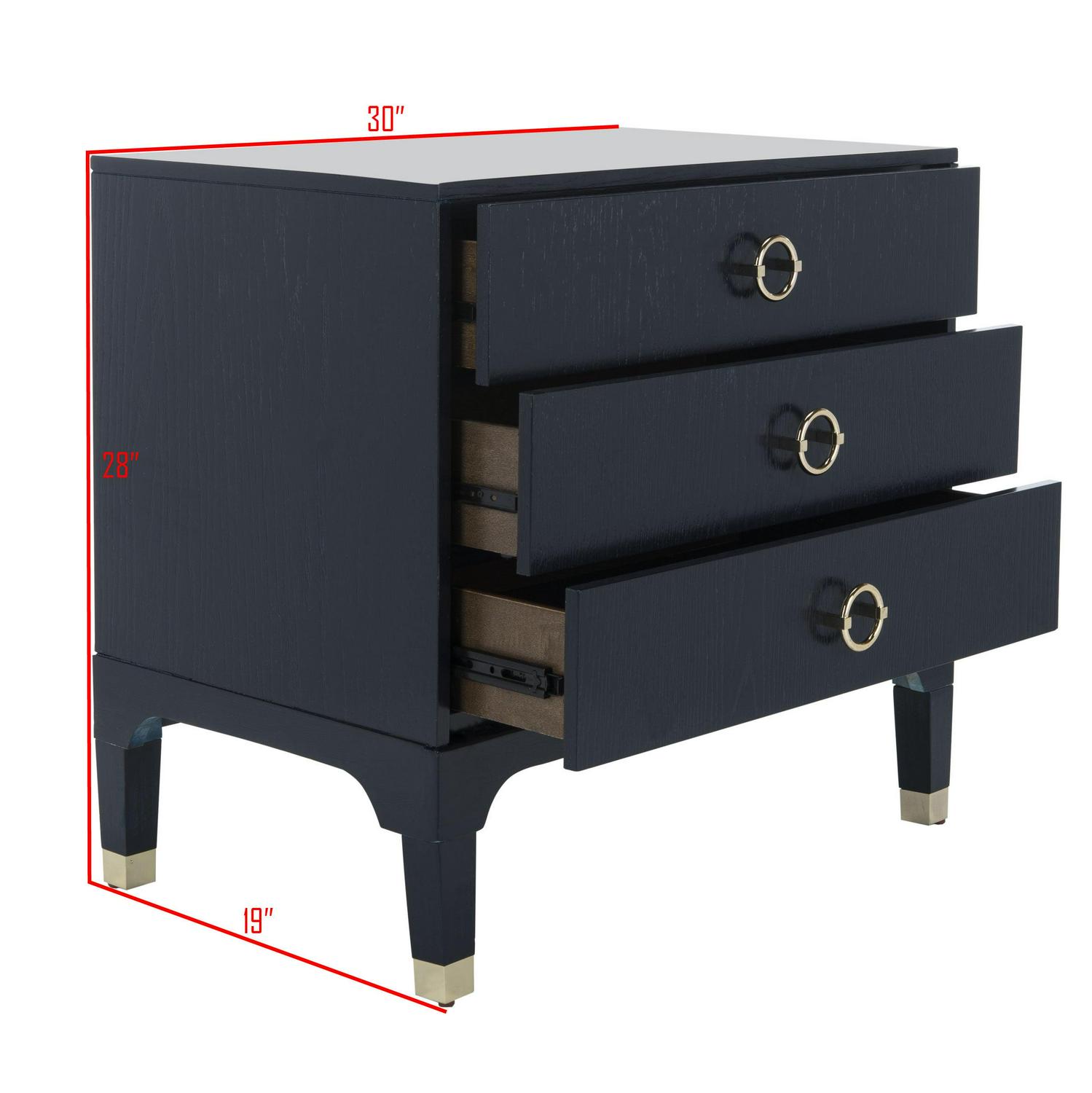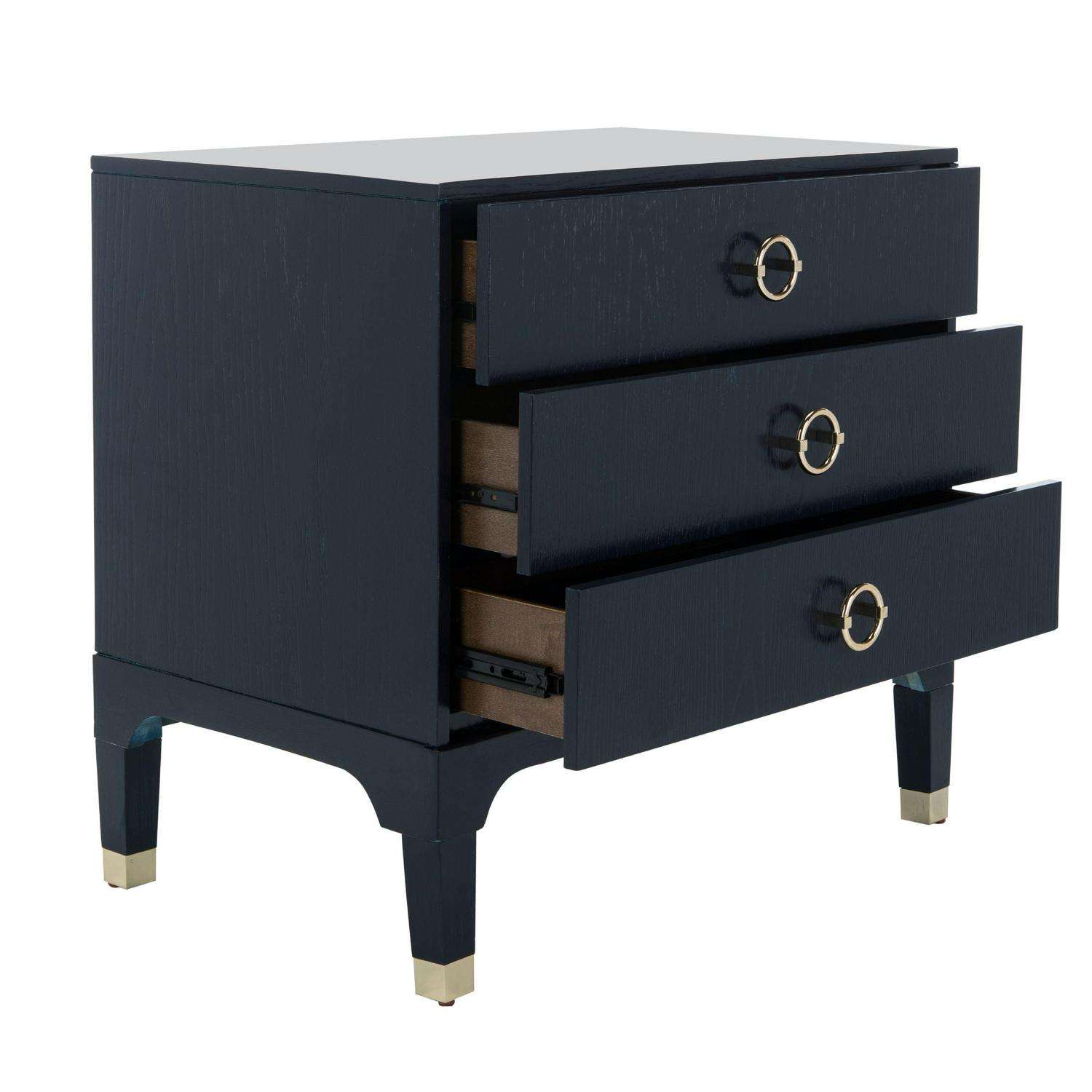 Elegant and refined, this contemporary night stand brings style and substance to any interior. Designed with a blend of clean lines, chic hardware and a timeless navy finish, its ample three drawers add storage to any chic bedroom.