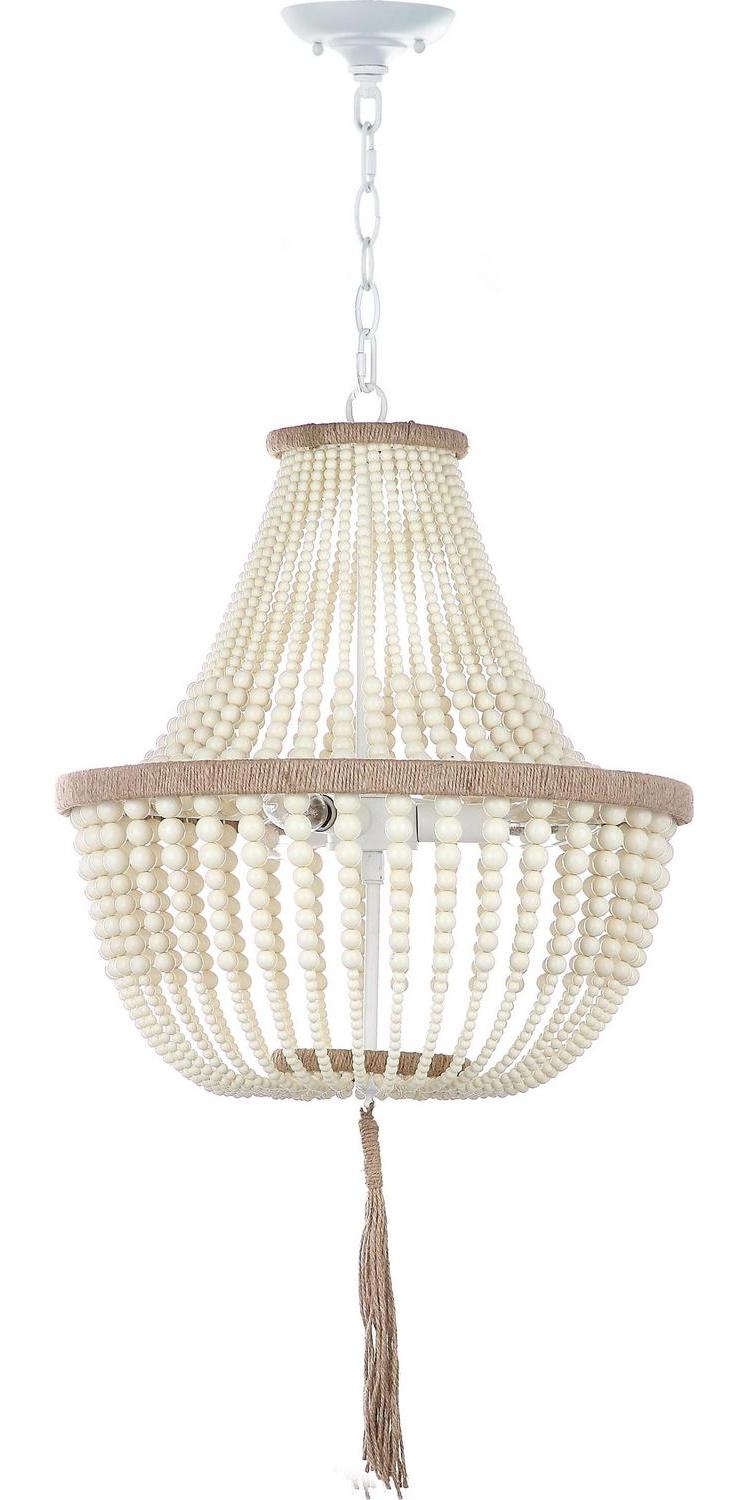 SAFAVIEH Lush Kristi 3 Light 16.5 In. Dia. Beaded Pendant, Cream