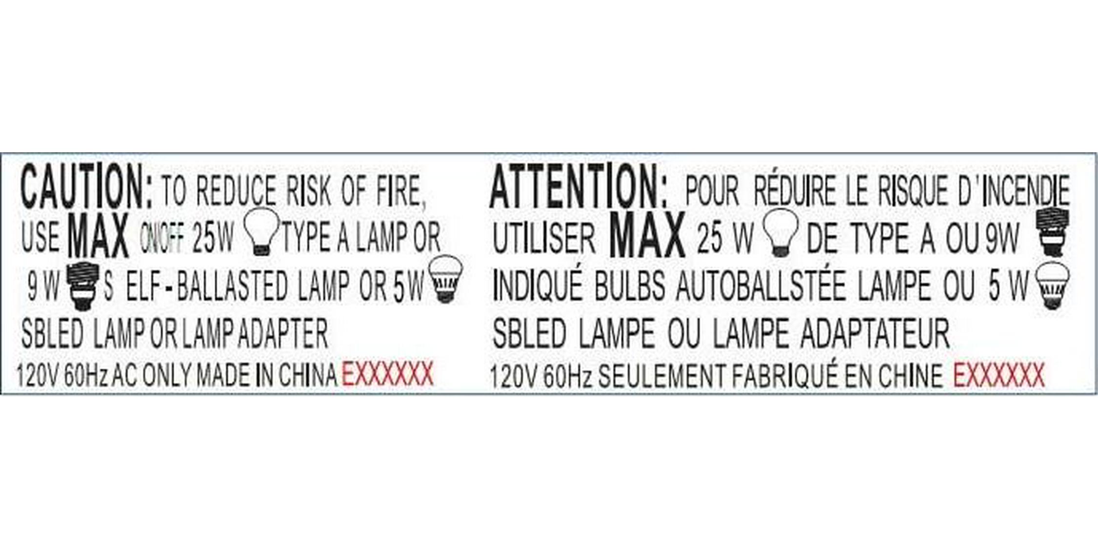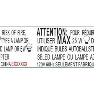 - Lamp Certification: UL