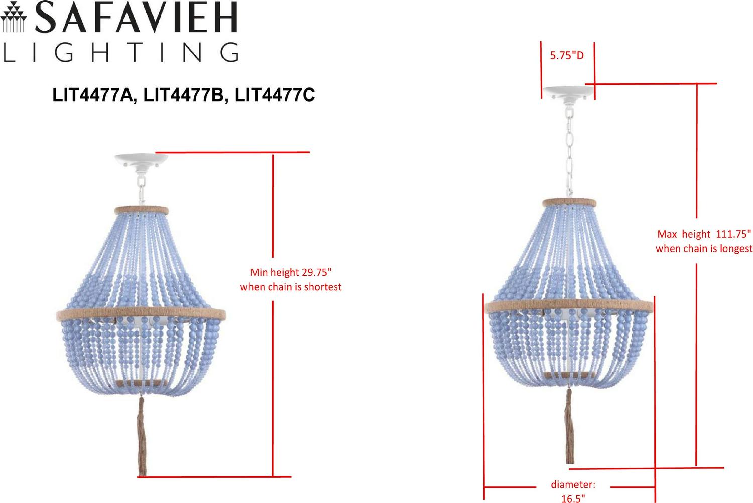 – Minimum Hanging Length: 29. 75 in. H