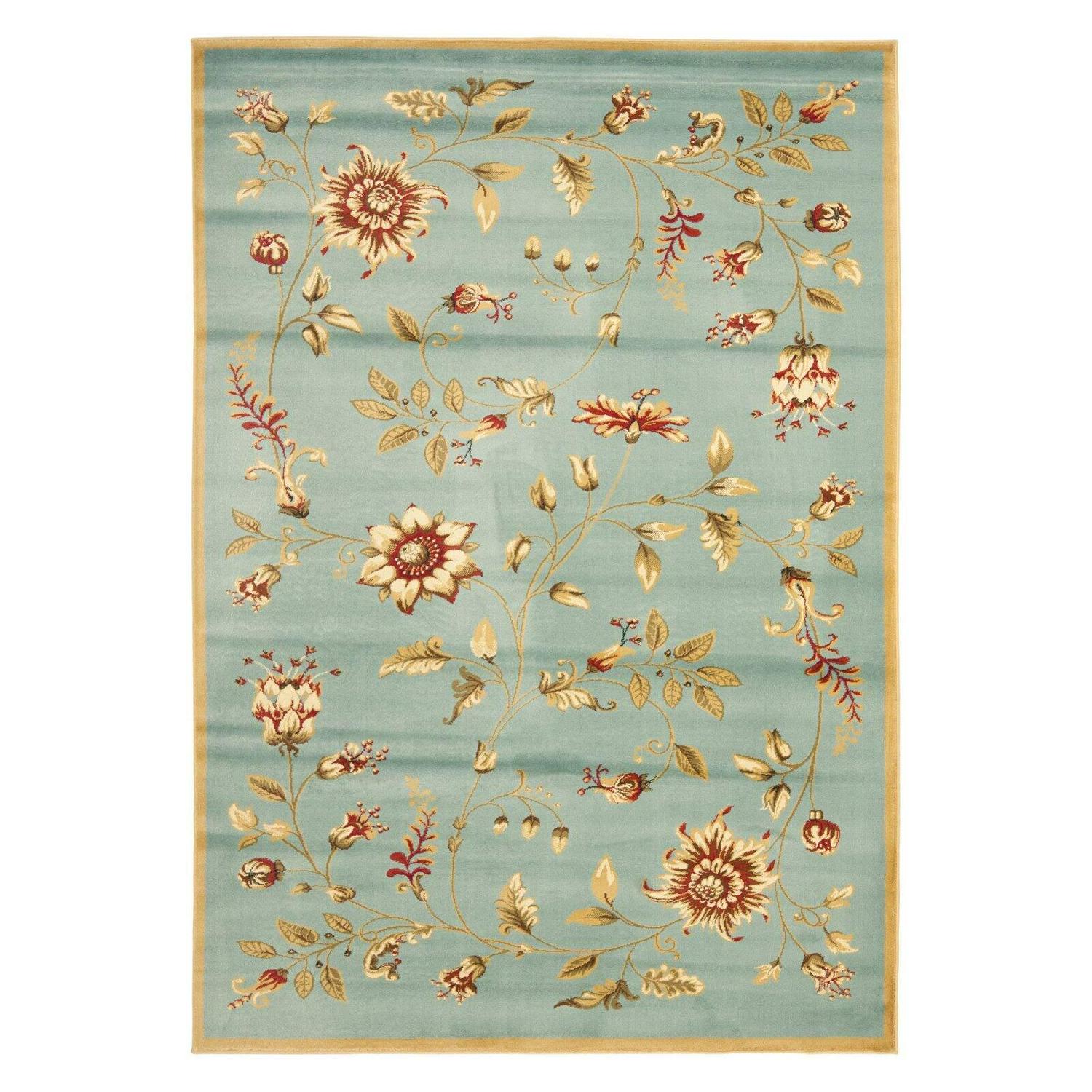 SAFAVIEH Lyndhurst Milo Floral Border Area Rug, Blue/Multi, 4′ x 6′
