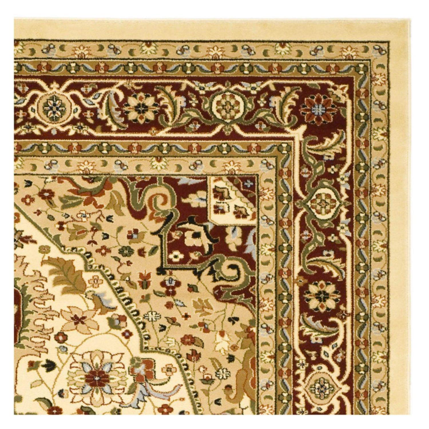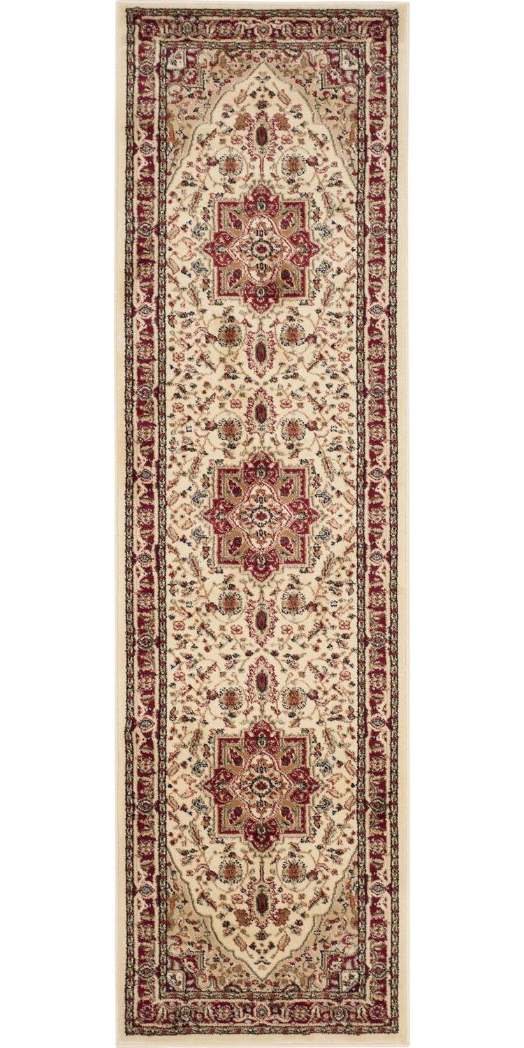 SAFAVIEH Lyndhurst LNH330A Ivory / Red Rug The Lyndhurst Rug Collection features the exquisitely detailed designs and noble colors found in the finest Persian and European styled rugs. Constructed using a blend of soft, sturdy synthetic fibers and designed in traditional Persian florals, these rugs will add classic charm and character to any room. These dazzling and durable floor coverings are available in many styles, colors, shape and sizes, including hallway runners and foyer rugs. Rug has an approximate thickness of 0.43 inches.