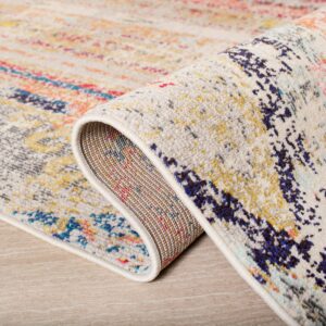 SAFAVIEH Madison Christabella Overdyed Striped Area Rug, Grey/Orange, 5’3″ x 7’6″