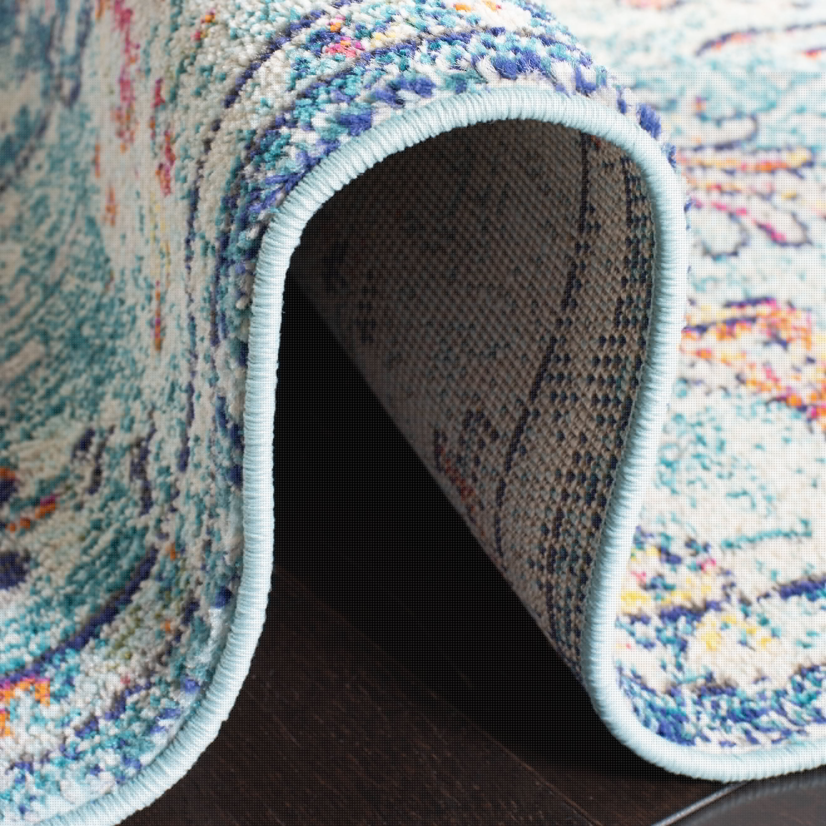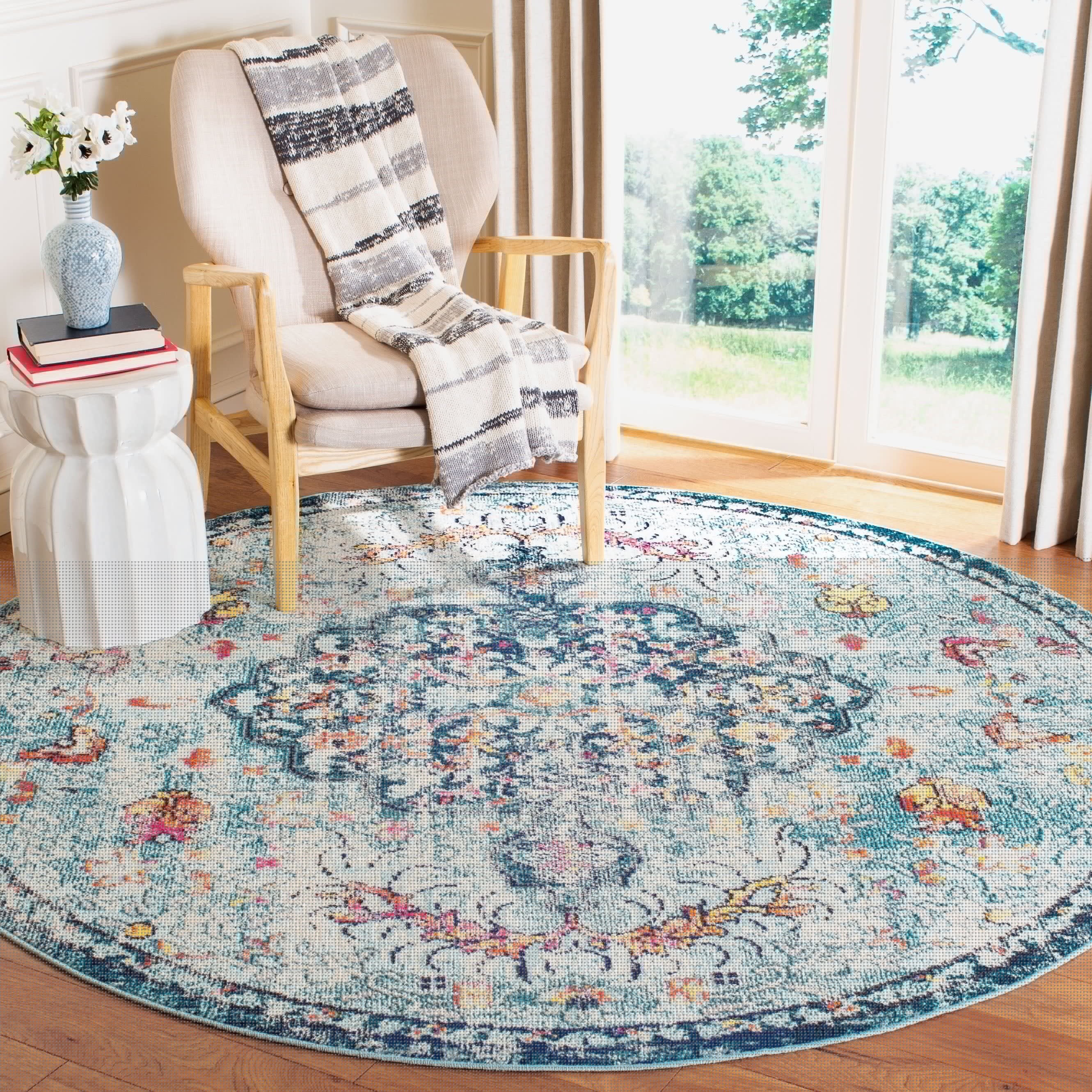 SAFAVIEH Madison Joandra Vintage Floral Area Rug, Navy/Light Blue, 11′ x 11′ Round