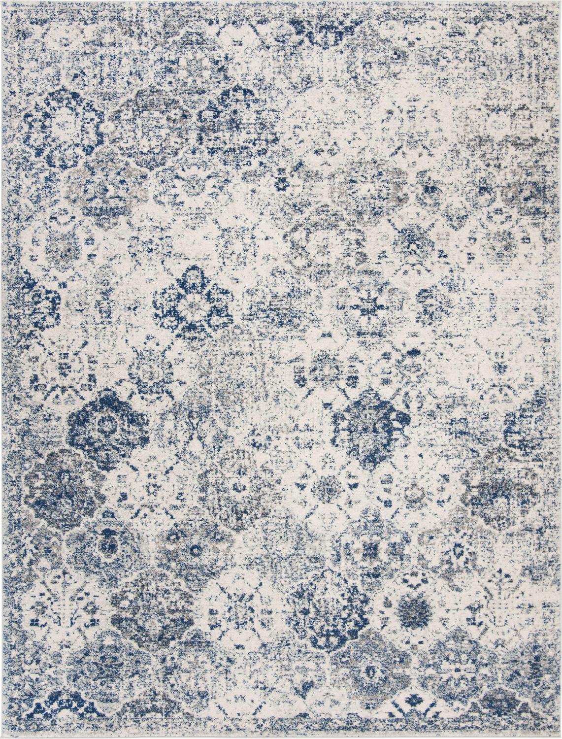 SAFAVIEH Madison Judith Distressed Area Rug, White/Royal Blue, 9′ x 12′