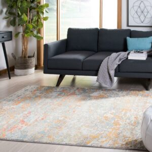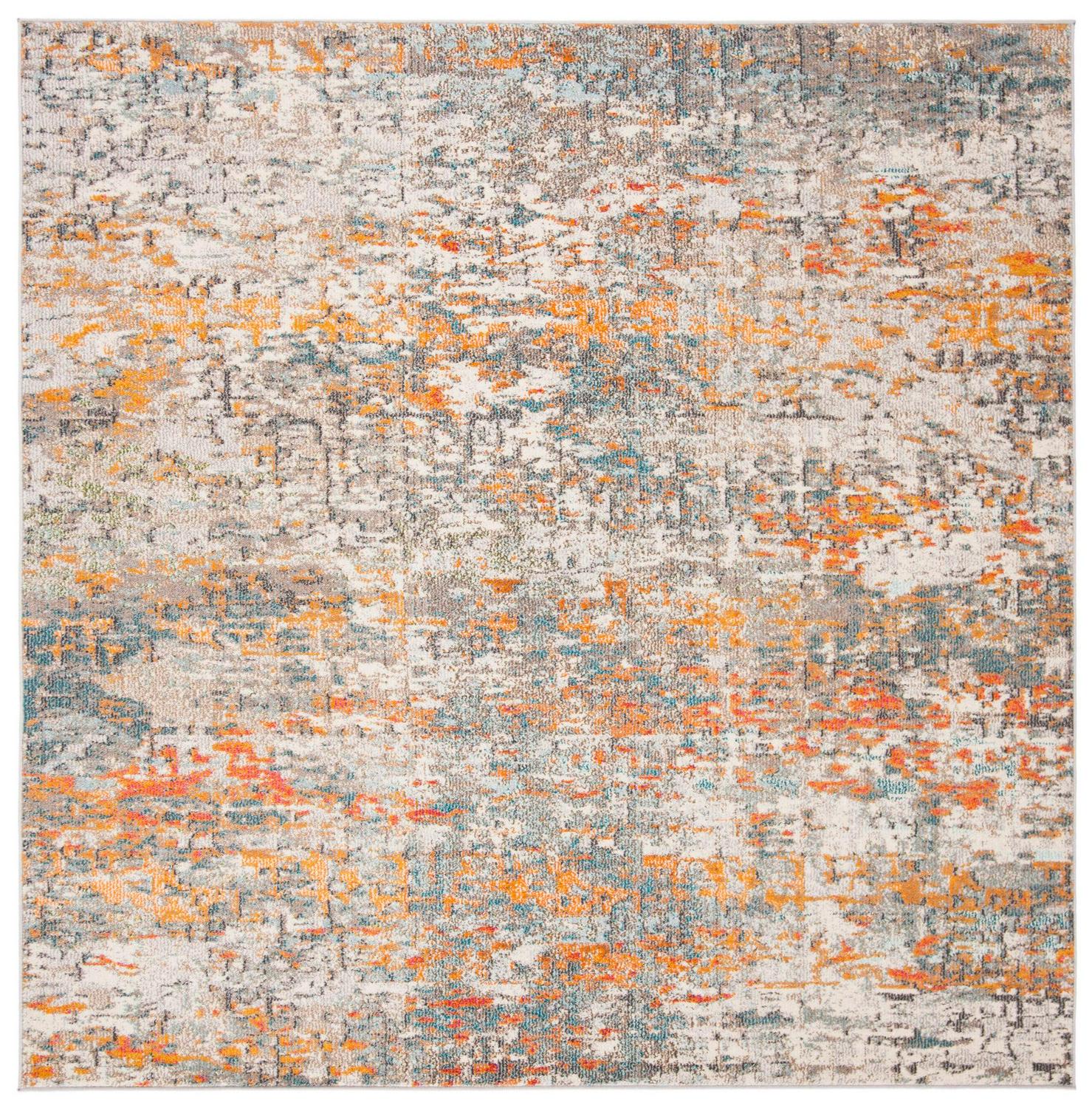 SAFAVIEH Madison Kebo Vintage Abstract Area Rug, Grey/Orange, 8′ x 8′ Square