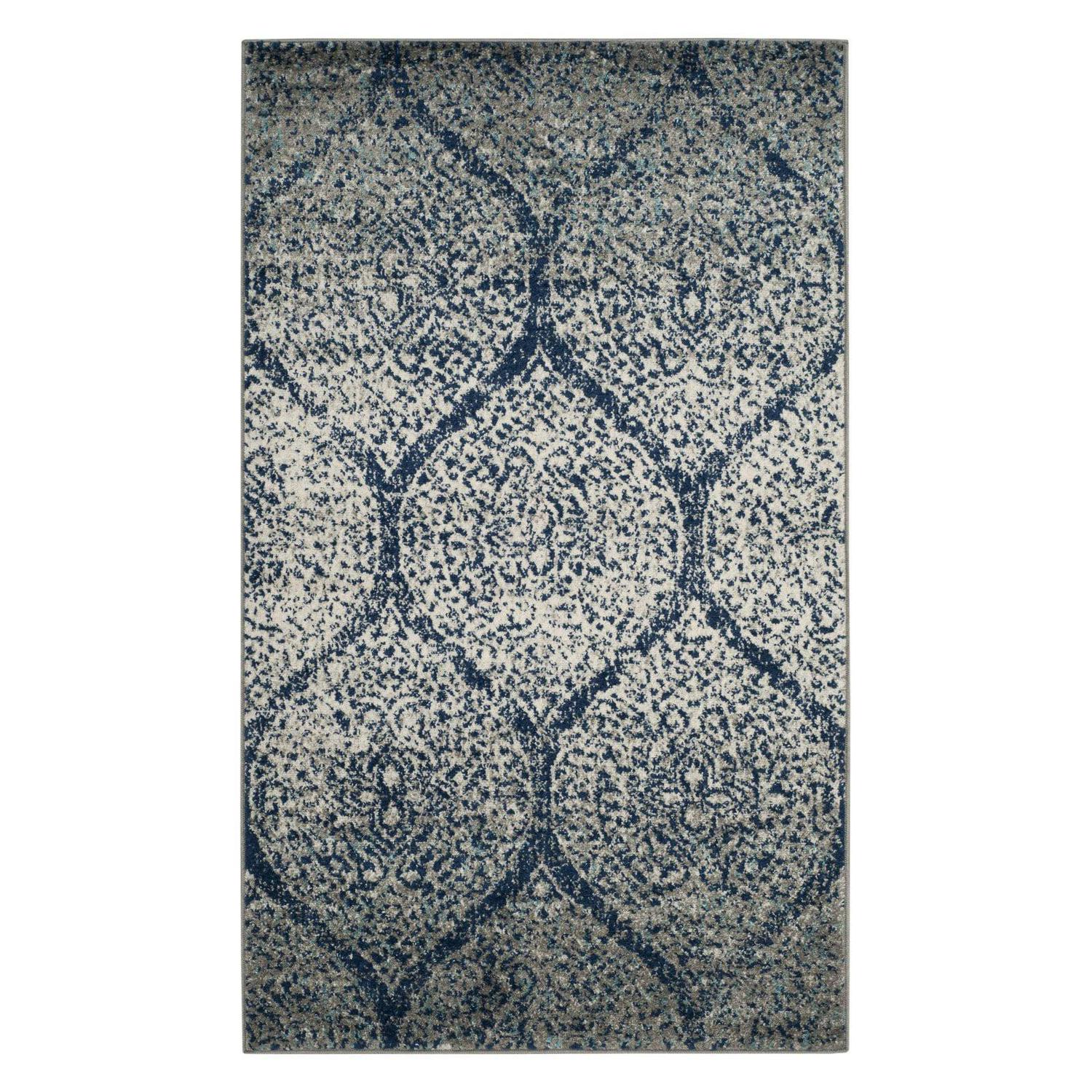 SAFAVIEH Madison Leighton Geometric Area Rug, Navy/Silver, 6’7 x 9’2