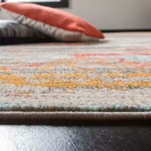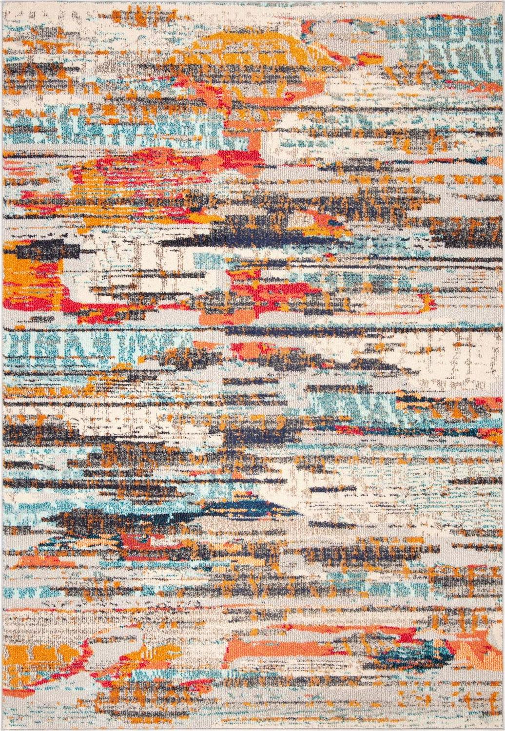 SAFAVIEH Madison Orlando Abstract Distressed Area Rug, Ivory/Multi, 5’3 x 7’6
