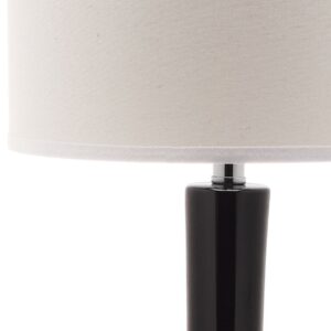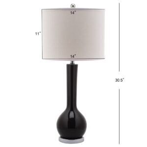 SAFAVIEH Mae Long Neck Table Lamp (Set of 2) | Black | Inspired by a classic pottery form, this single gourd ceramic lamp with extra long neck lends a stately but contemporary presence in any room. Shown in black with brushed silver base and neck, this artful lamp is complemented with a contemporary white cotton drum shade. Begin your rug, furniture, lighting, outdoor, and home decor search and discover over 100,000 SAFAVIEH products today.