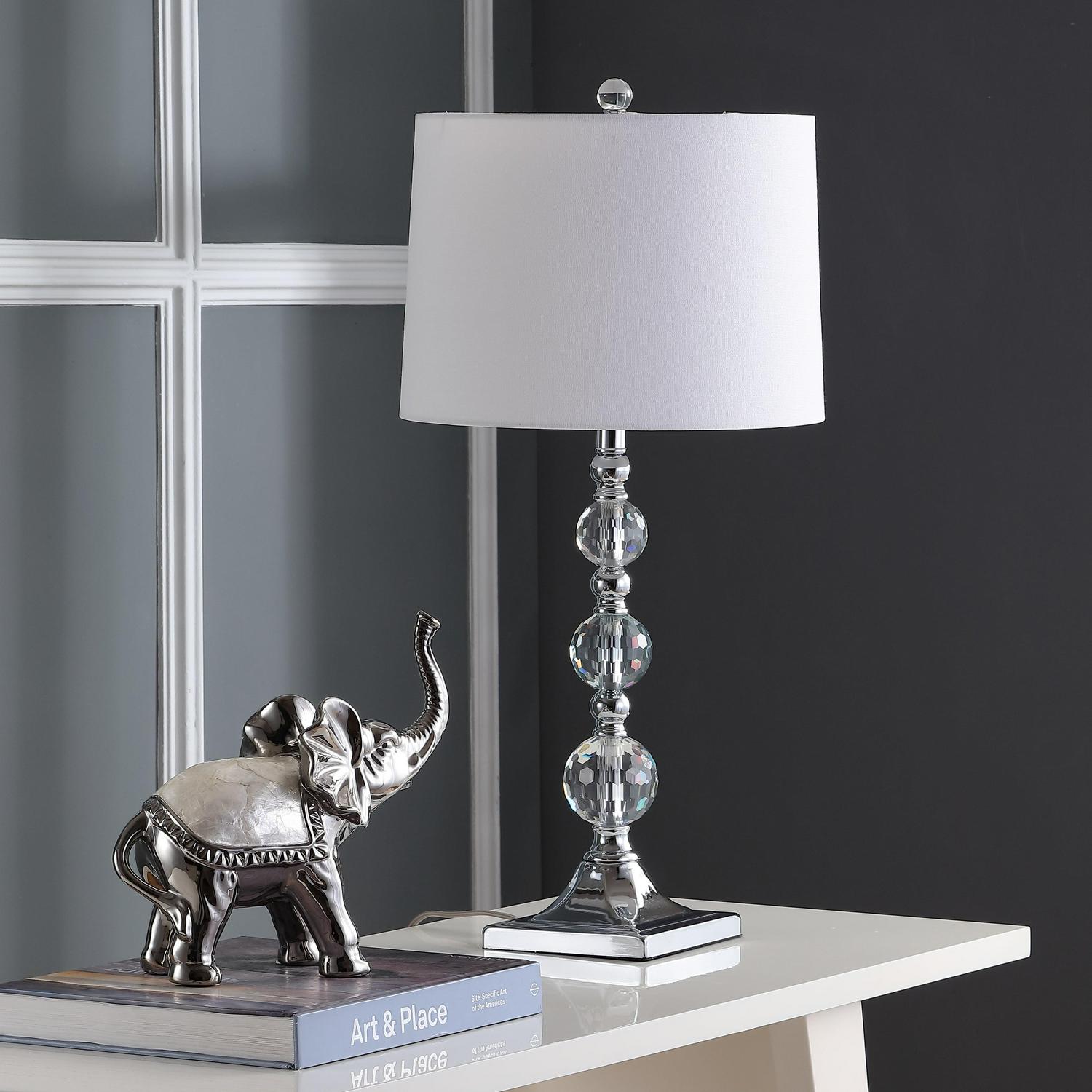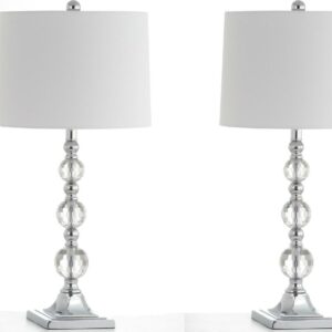 SAFAVIEH Maeve 28 in. H Crystal Ball Table Lamp, Clear/White, Set of 2
