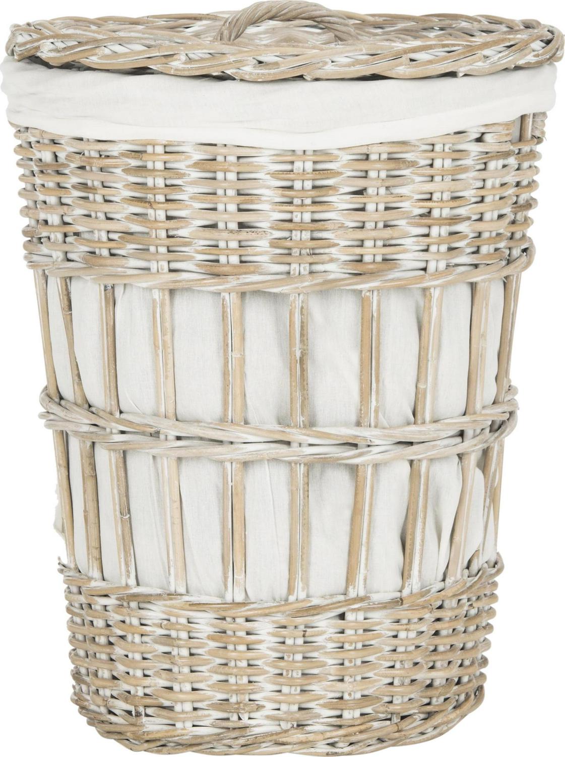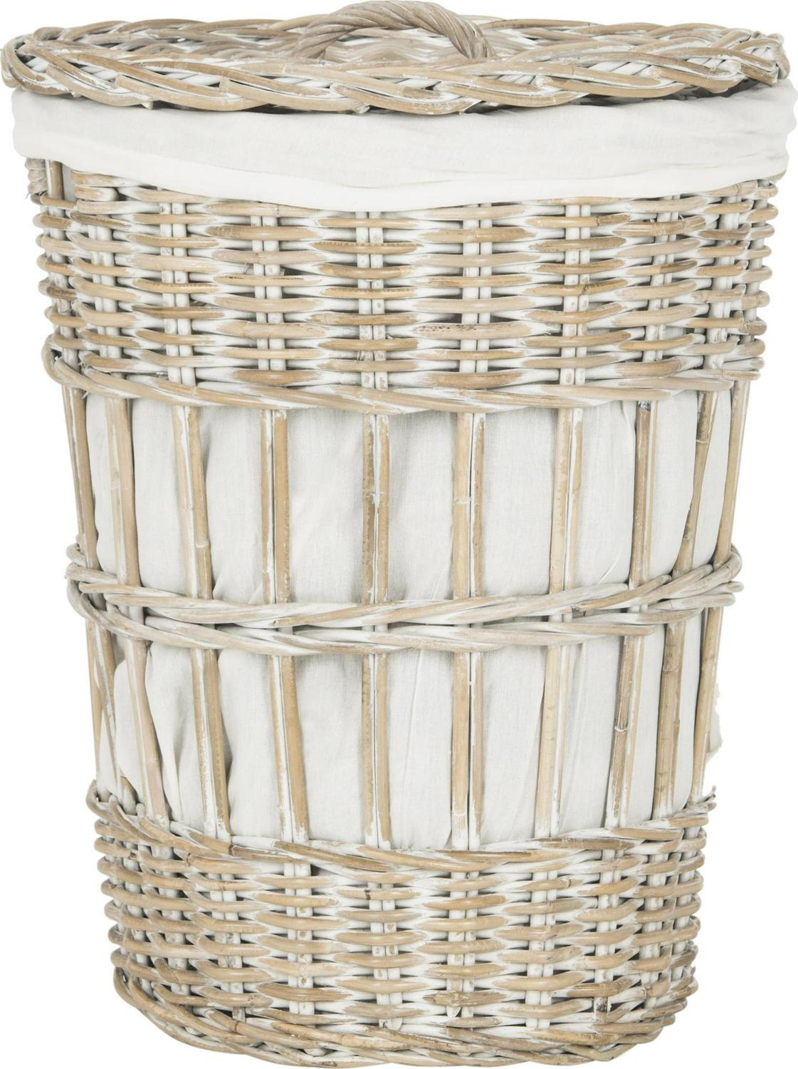 Inspired by the décor of a spa escape in Bali, this chic storage hamper with white liner is ideal for any laundry room or closet. Crafted with kubu, its fresh, white-wash finish and rich texture ensure life s unsightly accoutrements are stored with ease.