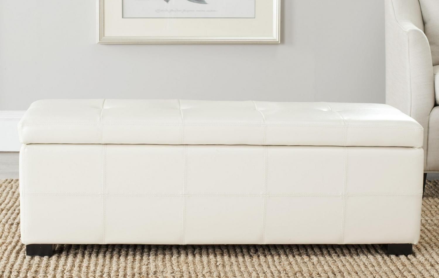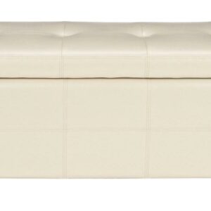 Additional seating and storage is always welcome and the Large Maiden Tufted Storage Bench offers both. Crafted with birch wood in black finish and flat cream bicast leather, this super-sized piece brings just as much style as it does substance.- Contemporary design adds a chic look to your home
