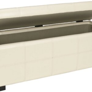 SAFAVIEH Maiden Large Rustic Flip Top Tufted Storage Bench, Flat Cream