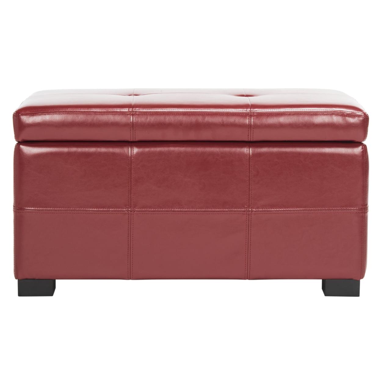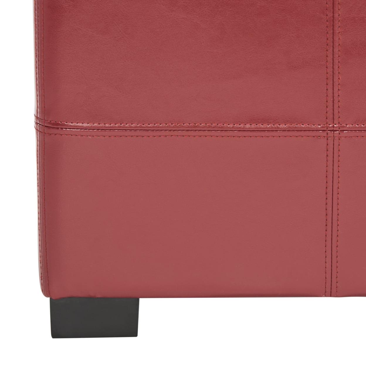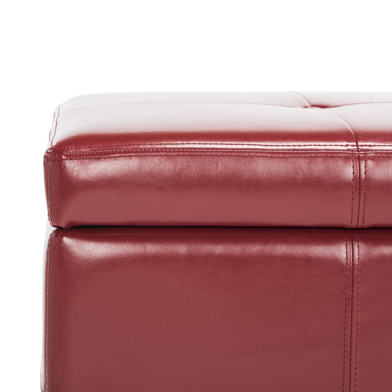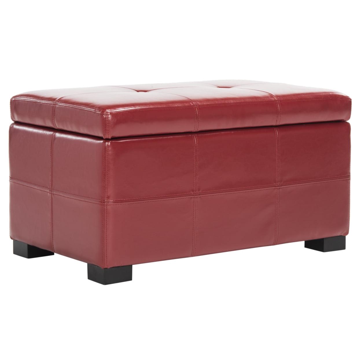 SAFAVIEH Maiden Tufted Storage Bench Sm Red Life is full of surprises. The Small Maiden Tufted Storage Bench is a perfect blend of storage and style, celebrating the art of living with its dual functionality. Crafted with red bicast leather and birch wood in a black finish, its petite storage chest and tufted seat are ideal for a room in need of a modern touch.