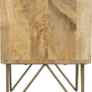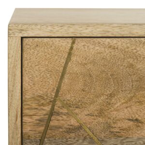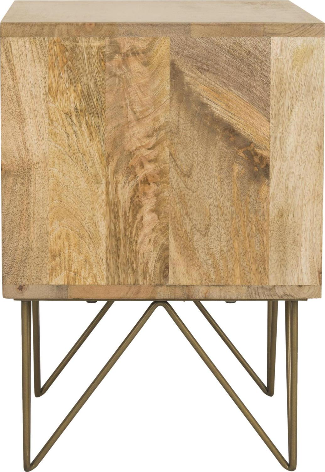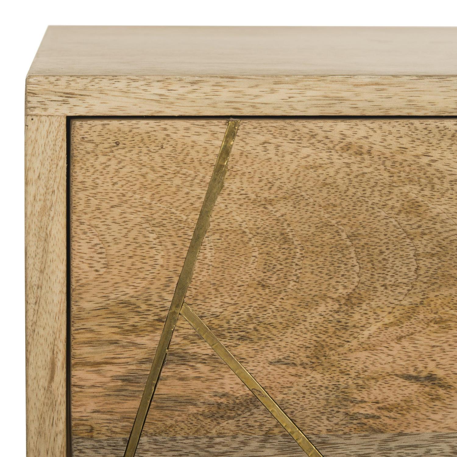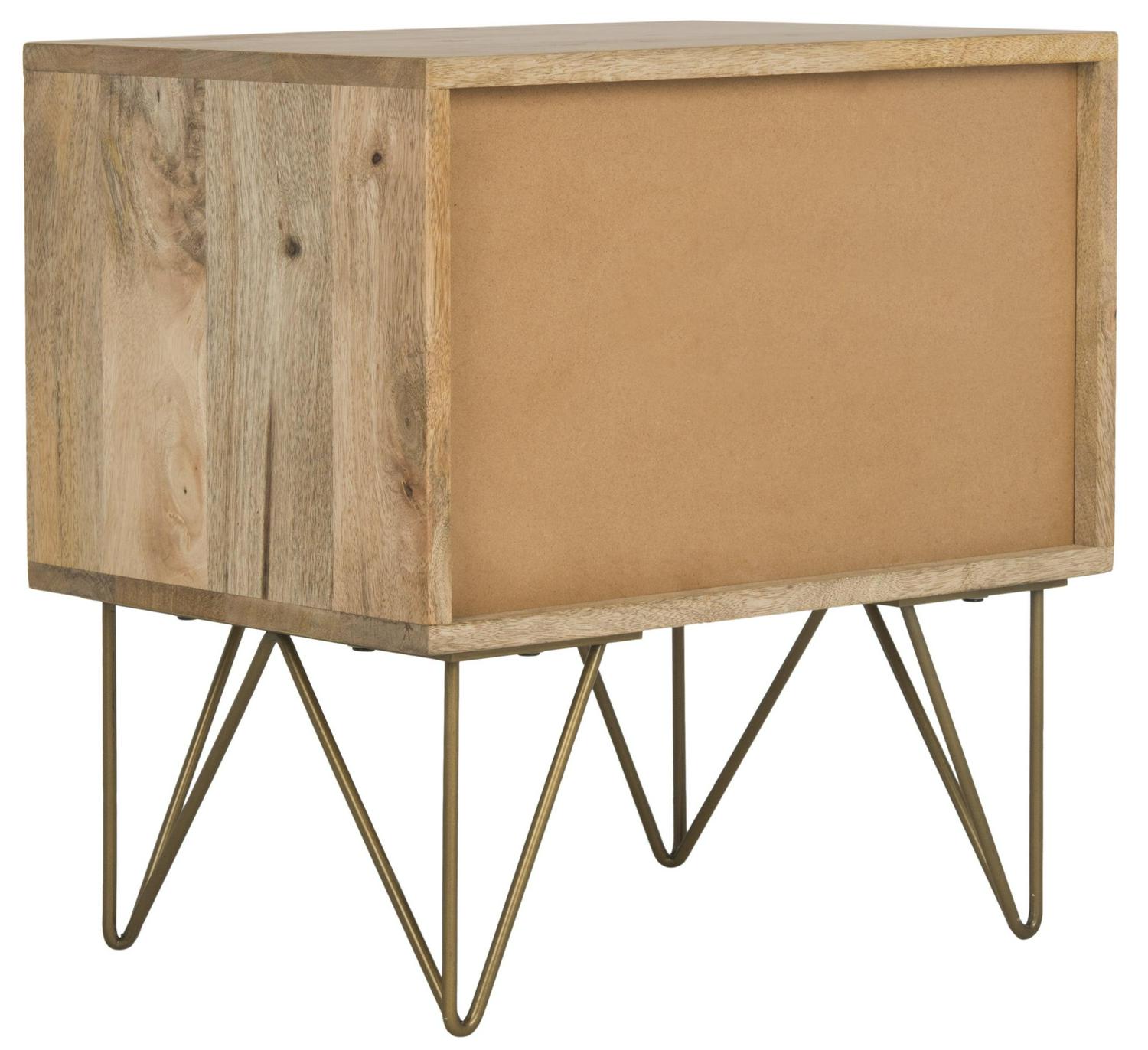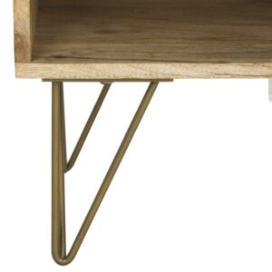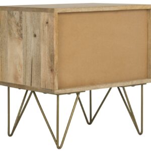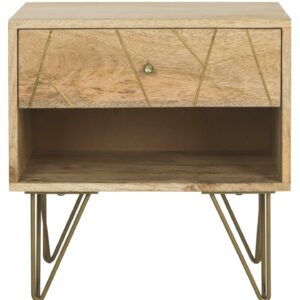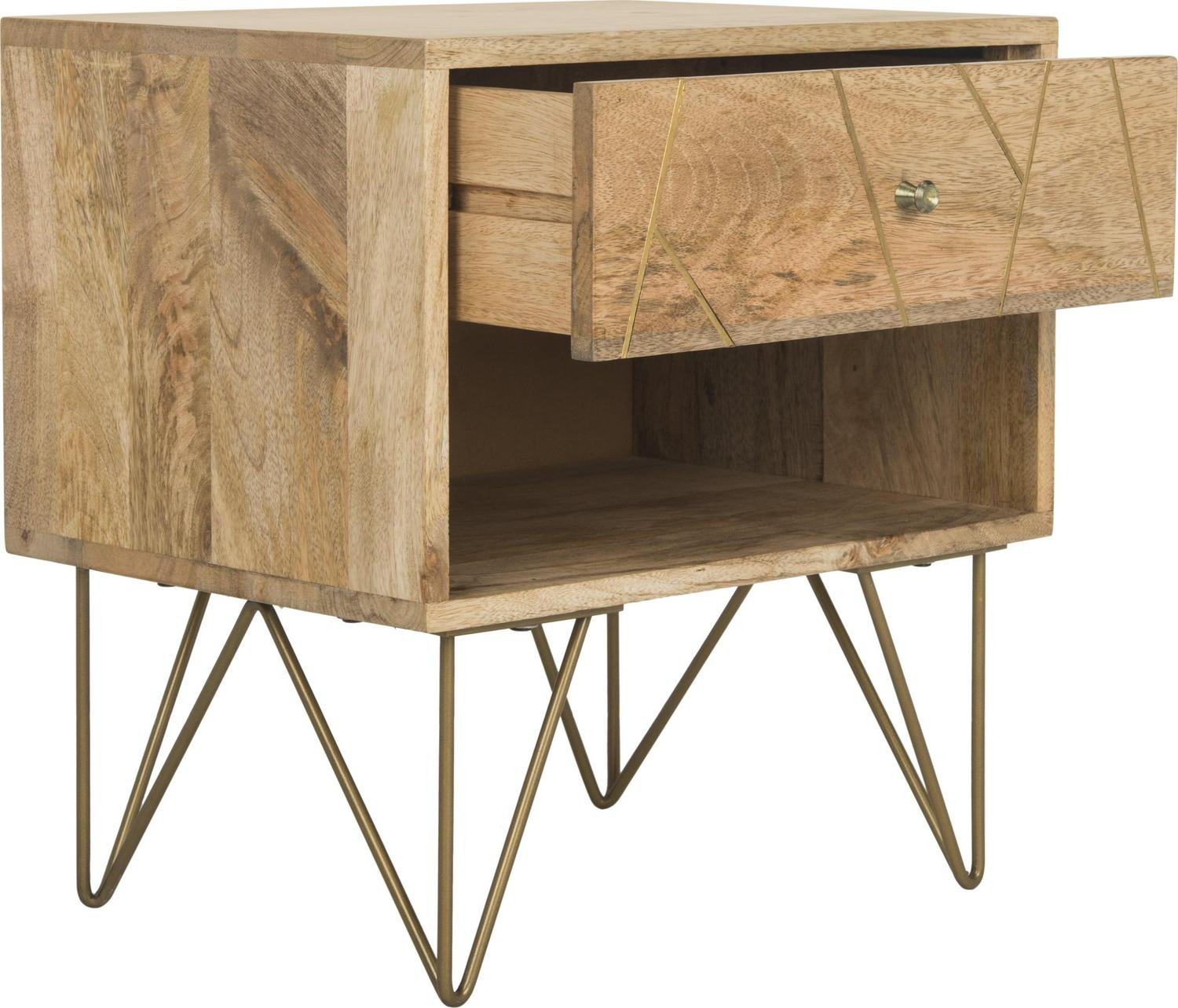 Bring decorative drama to any room with this Marigold Nightstand. Taking inspiration from vintage designs, Marigold flaunts geometric hairpin legs in a sleek brass finish that beautifully pair with the matching inlay on its single drawer and rich natural mango wood. Durable and multi-use, this nightstand is the perfect addition in your home for a designer stylish upgrade.
