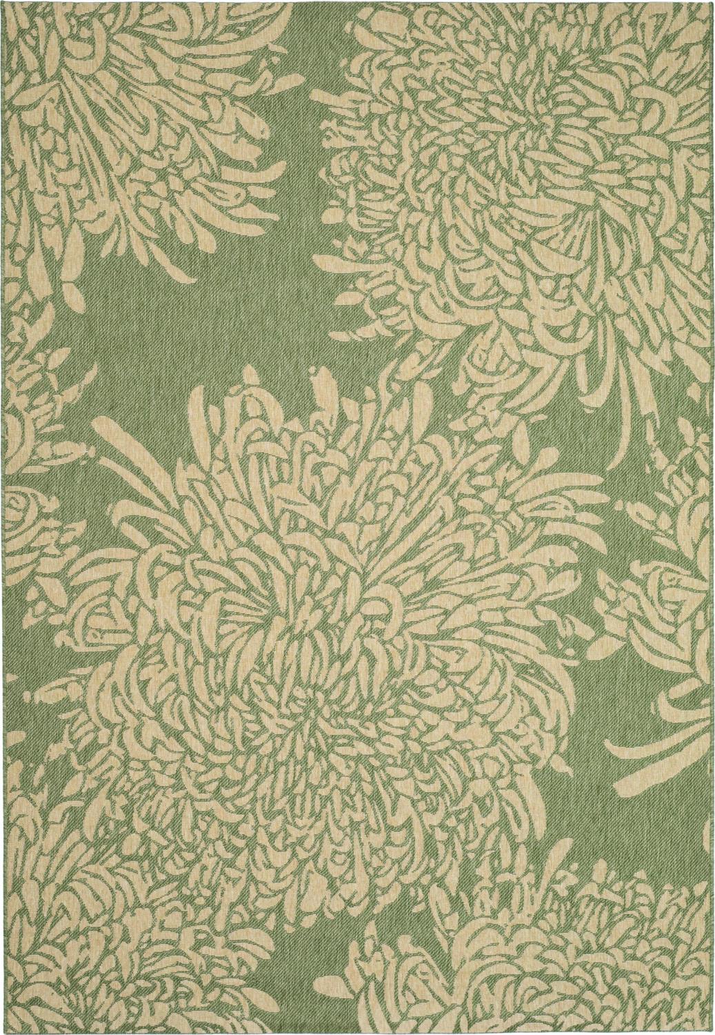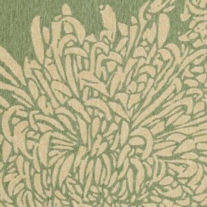 Use the Martha Stewart Living Chrysanthemum area rug to decorate your patio or porch. This durable rug is made with polypropylene and can be used indoors and outdoors. It features a beautiful Chinese floral pattern and soft, elegant colors. You can use a garden hose to easily clean the rug. This is a great addition to your home whether in the country side or busy city.