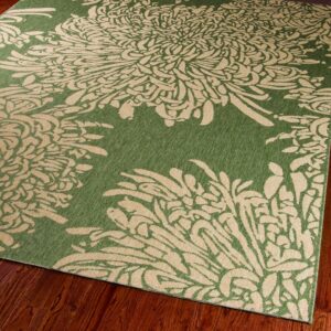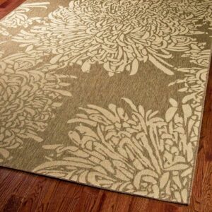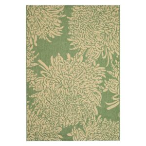 Use the Martha Stewart Living Chrysanthemum area rug to decorate your patio or porch. This durable rug is made with polypropylene and can be used indoors and outdoors. It features a beautiful Chinese floral pattern and soft, elegant colors. You can use a garden hose to easily clean the rug. This is a great addition to your home whether in the country side or busy city.