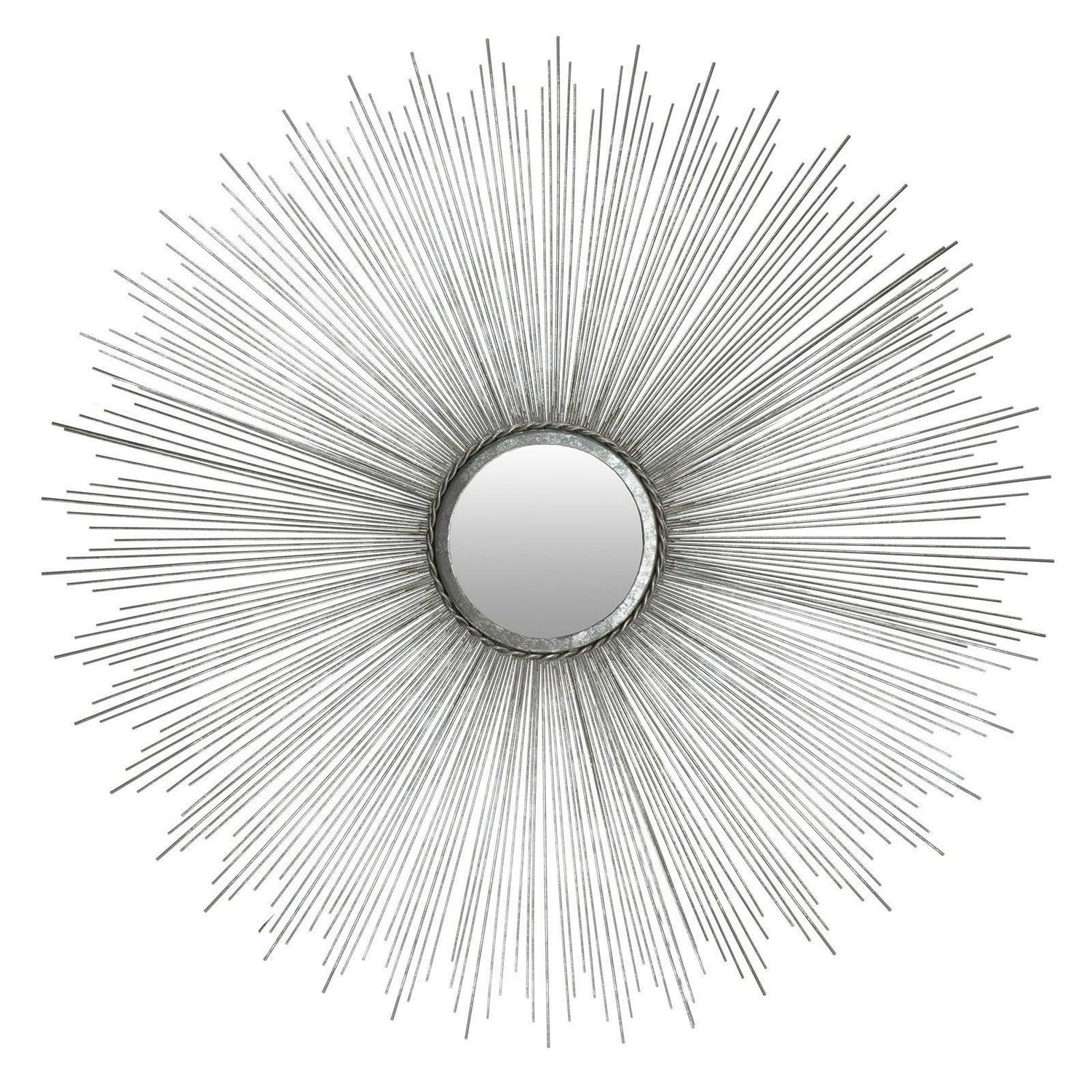 – The Sunburst Mirror with its delicate wire spokes radiating from a central disc will glow night and day to reflect your room’s lighting