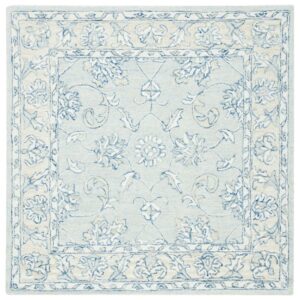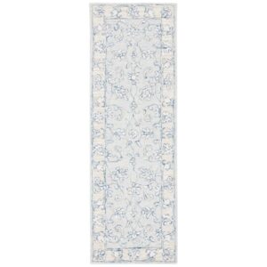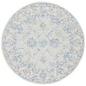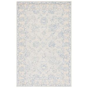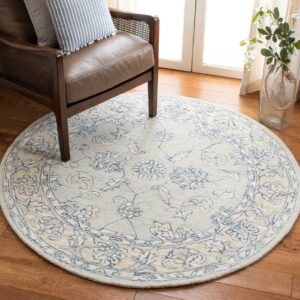 SAFAVIEH Micro-Loop Calista Floral Bordered Wool Area Rug, Blue/Beige, 4′ x 6′