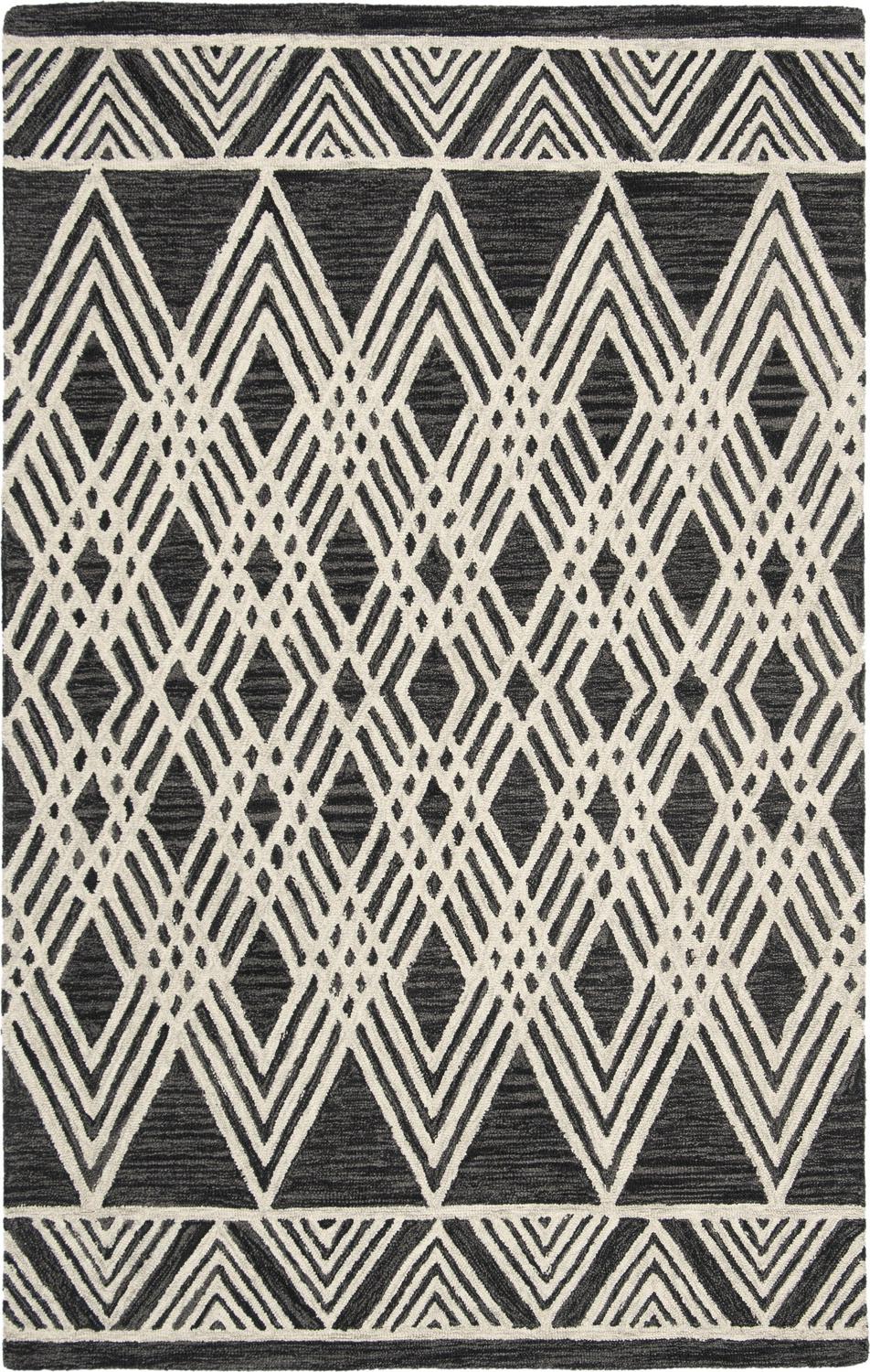 SAFAVIEH Micro-Loop Crispin Geometric Chevron Wool Area Rug, Charcoal/Ivory, 5′ x 8′