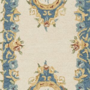 SAFAVIEH Micro-Loop Ibrahim Floral Bordered Wool Runner Rug, Cream/Blue, 2’3 x 7′