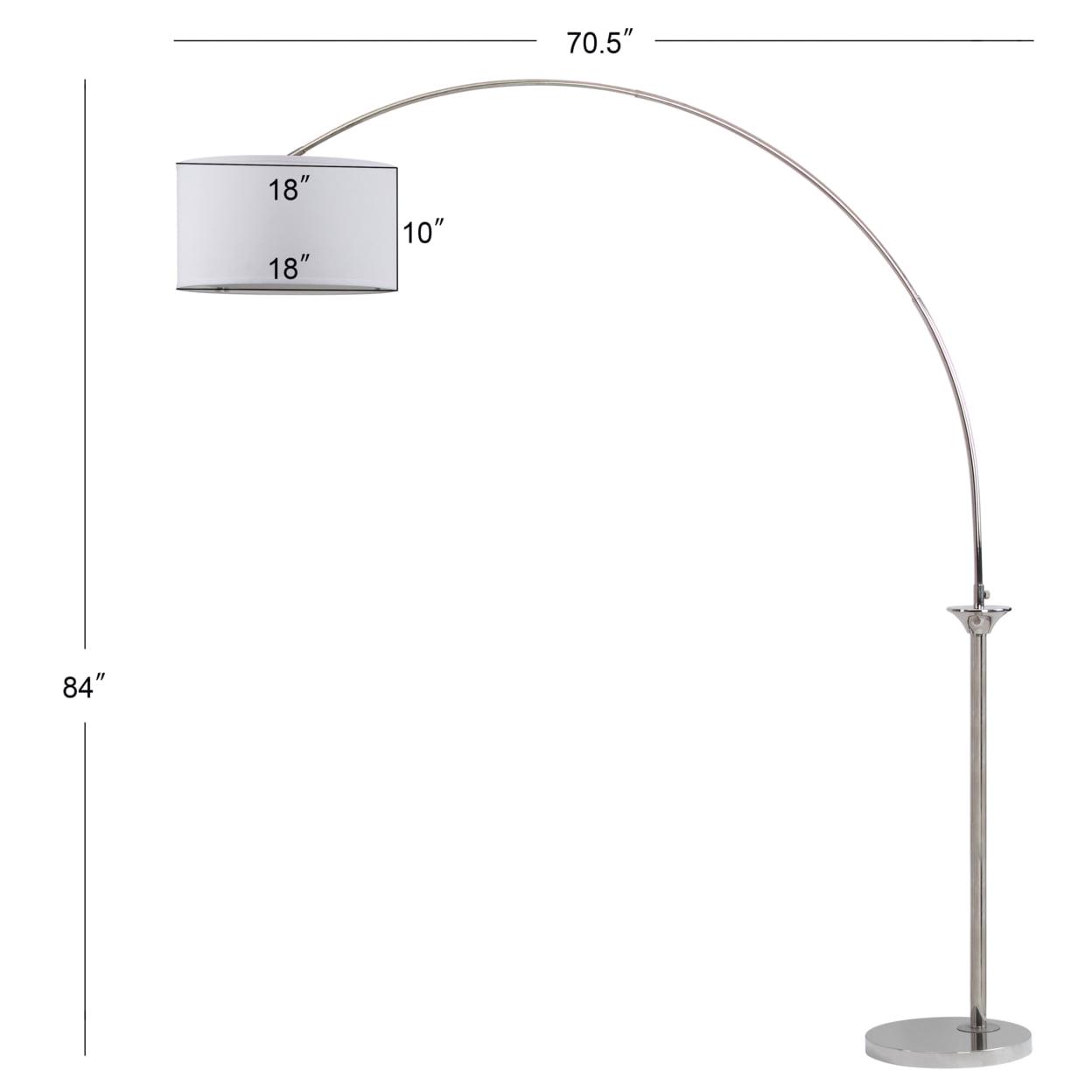 SAFAVIEH Mira Arc Floor Lamp | Nickle | Leaning toward the feminine side, this elegant arc floor lamp is the perfect bridge between transitional and contemporary design. Its compact curved arc in gleaming nickel and pure cotton drum shade make a fashion statement to brighten a living room. Begin your rug, furniture, lighting, outdoor, and home decor search and discover over 100,000 SAFAVIEH products today.