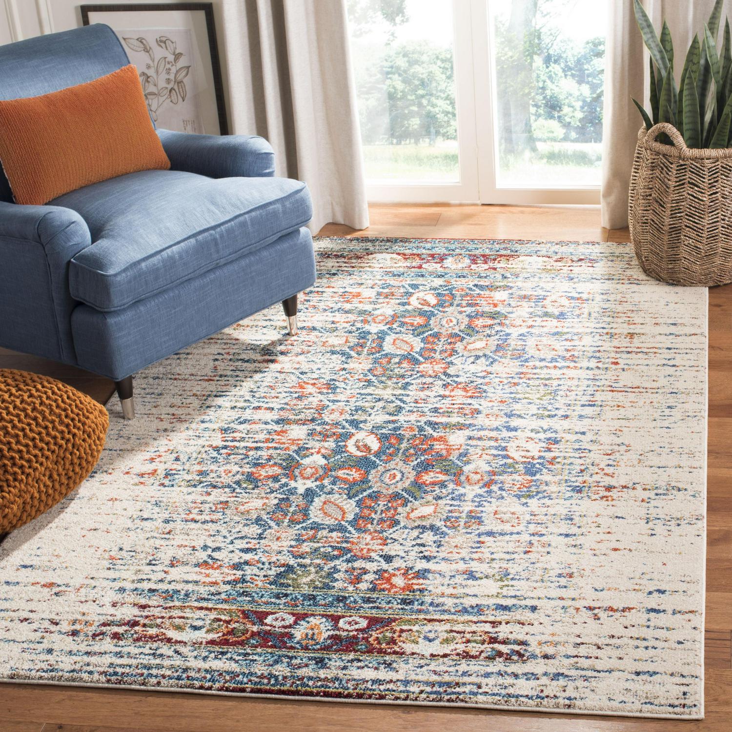 SAFAVIEH Monaco Annabelle Vintage Area Rug, Ivory/Blue, 5’1 x 7’7