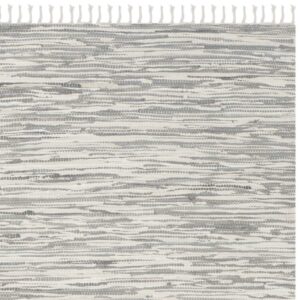 SAFAVIEH Montauk Rosalind Striped Braided Cotton Area Rug, Silver, 5′ x 7′