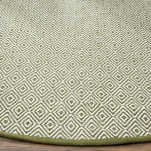 SAFAVIEH Montauk MTK515J Handwoven Ivory /Foam Green Rug The Montauk Collection captures the essence of casual designer styling in flat weave rugs that complement homes from coastal to contemporary. Hand-crafted of cotton for clarity of color, Montauk rugs are woven to create classic Ikat tie-dye effects that will be a great addition to any room. Rug has an approximate thickness of 0.25 inches.