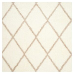 SAFAVIEH Montreal Vesela Geometric Diamonds Shag Runner Rug, Beige/Ivory, 2’3 x 9′