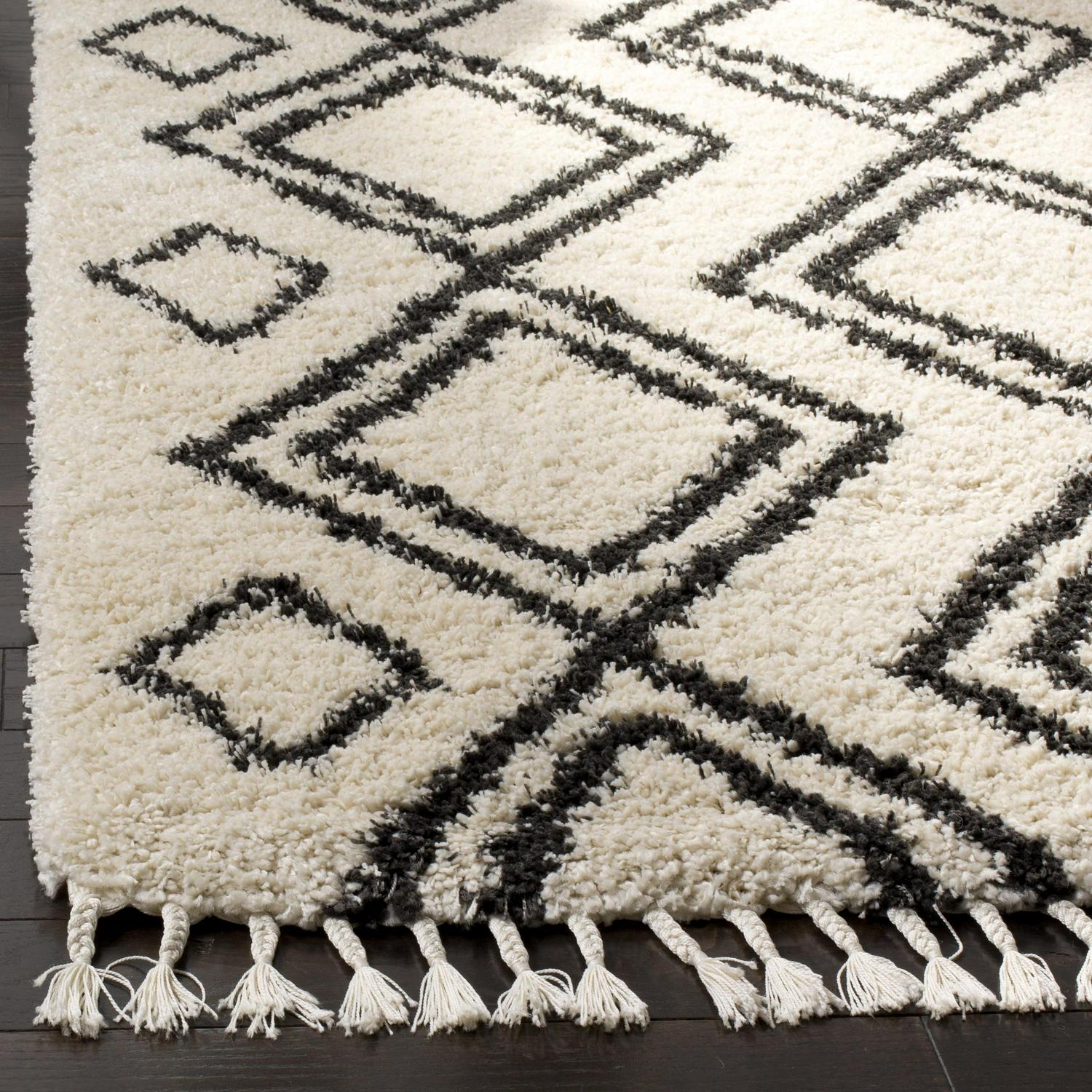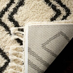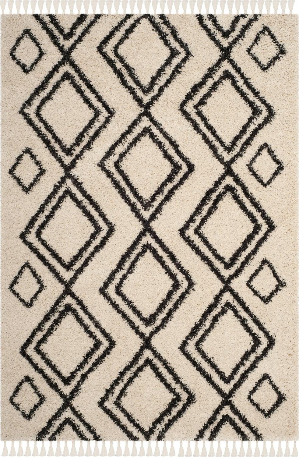 SAFAVIEH Moroccan Fringe Kaelea Geometric Shag Area Rug, Cream/Charcoal, 5’1 x 7’6