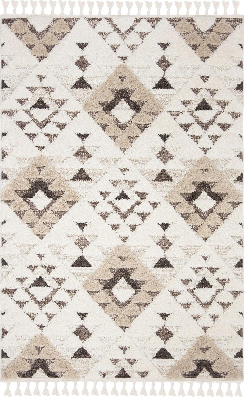 SAFAVIEH Moroccan Tassel Shag Larry Moroccan Geometric Area Rug, Ivory/Brown, 5’3 x 7’6